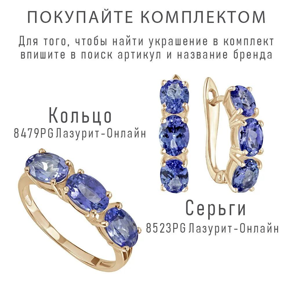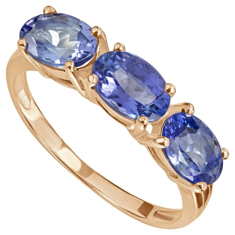 Серебряное кольцо с натуральным танзанитом (1 класс) - коллекция Муза / покрытие Розовое Золото