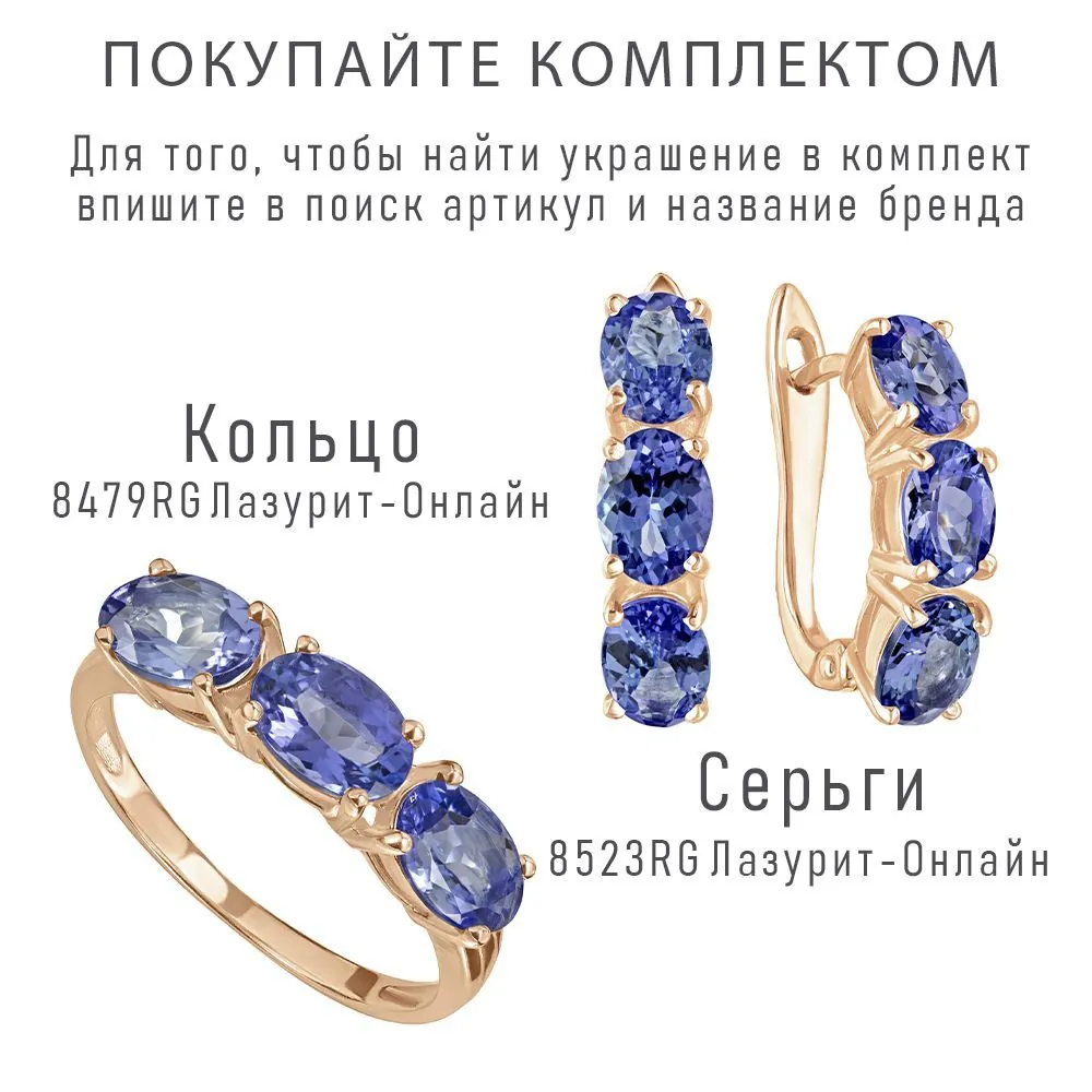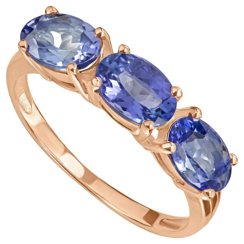 Серебряное кольцо с натуральным танзанитом (1 класс) - коллекция Муза / покрытие Красное Золото