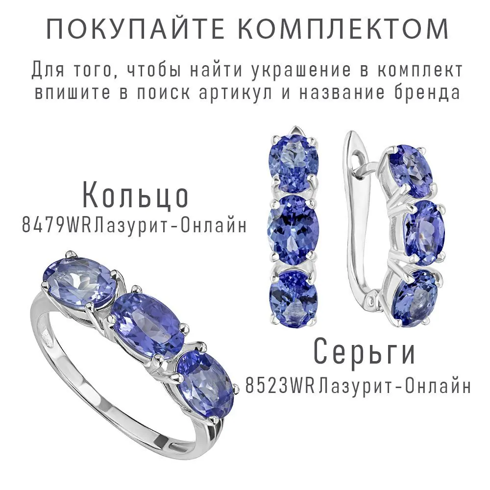 Серебряное кольцо с натуральным танзанитом (1 класс) - коллекция Муза. Средний вес украшения с камнями 2.35 гр. Месторождение: Танзанит (провинция Аруша, Танзания). Танзанит (Натуральный) овал 5*7 мм., средний вес: 0.89 карат. Все изделия собственного производства и имеют гарантию 12 месяцев. Арт. 8479. Танзанит – интересный камень, который нашли совершенно случайно и некоторое время относили к сапфирам, пока наконец многочисленные исследования не подтвердили, что это иной минерал. Глубокий синий цвет способен восстанавливать зрение, успокаивать нервную систему. Минералу приписывалась способность приносить богатство и успех в карьере.