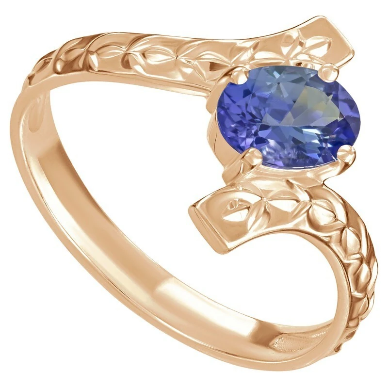Серебряное кольцо с натуральным танзанитом (1 класс) - коллекция Тея / покрытие Розовое Золото