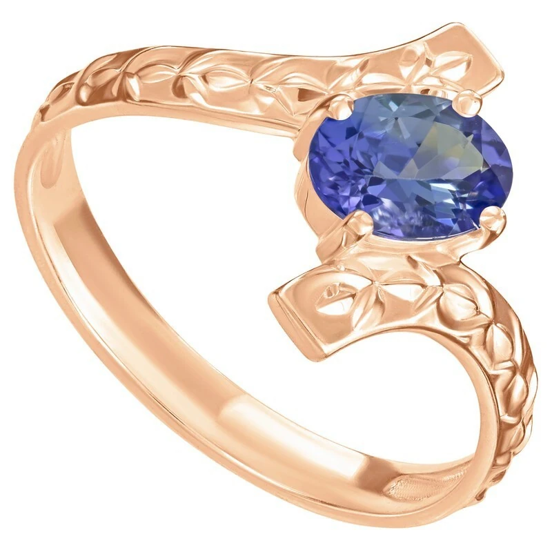 Серебряное кольцо с натуральным танзанитом (1 класс) - коллекция Тея / покрытие Красное Золото