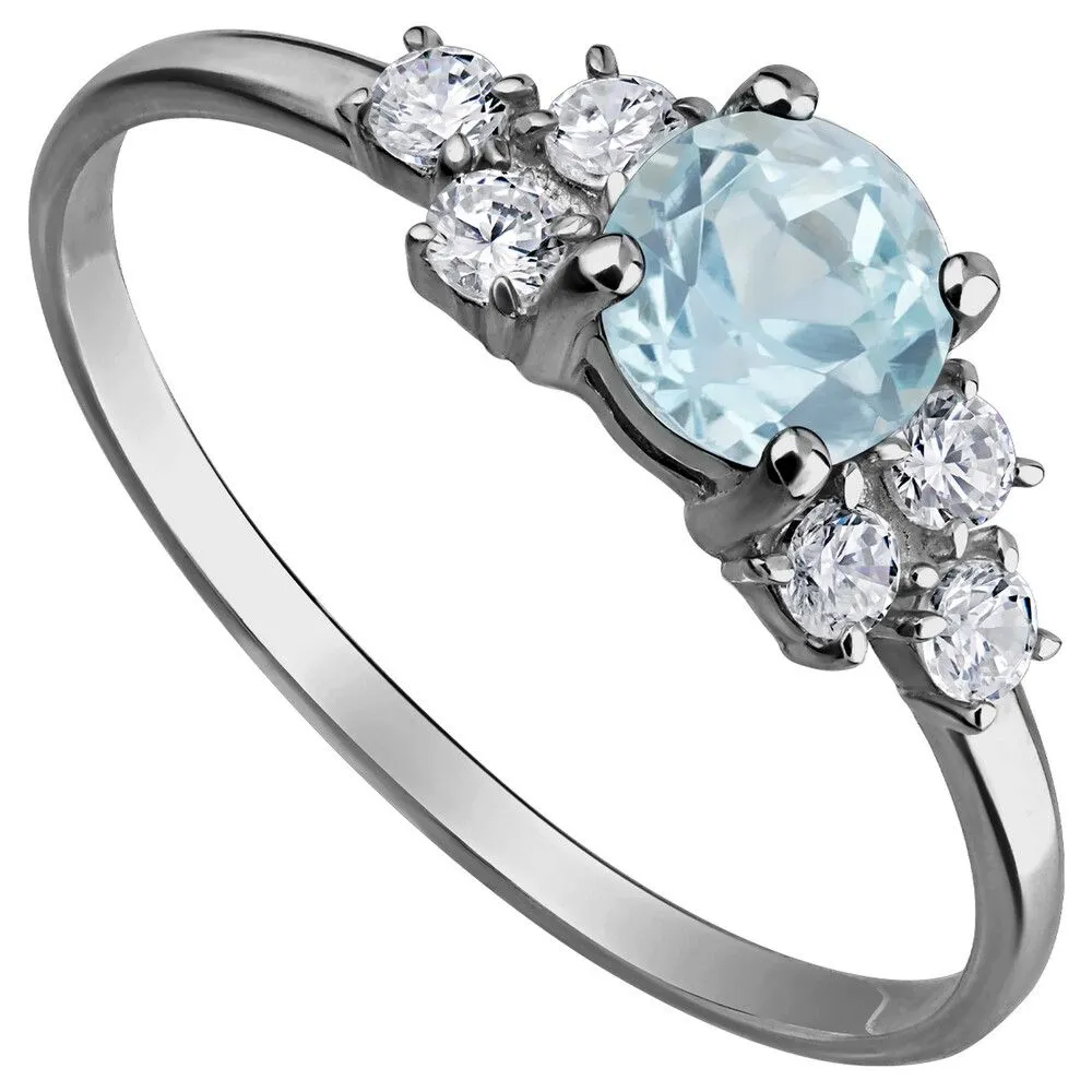 Серебряное кольцо с натуральным голубым топазом - коллекция Нова / Палладий. Средний вес украшения с камнями 1.24 гр. Месторождение: Топаз (Ильменские горы, Россия). Ювелирные вставки: Топаз (Натуральный) круг 5 мм., средний вес: 0.65 карат. Белый Нанокристалл круг 2 мм. Все изделия собственного производства и имеют гарантию 12 месяцев, к каждому изделию прилагается паспорт. Арт. 8657PD