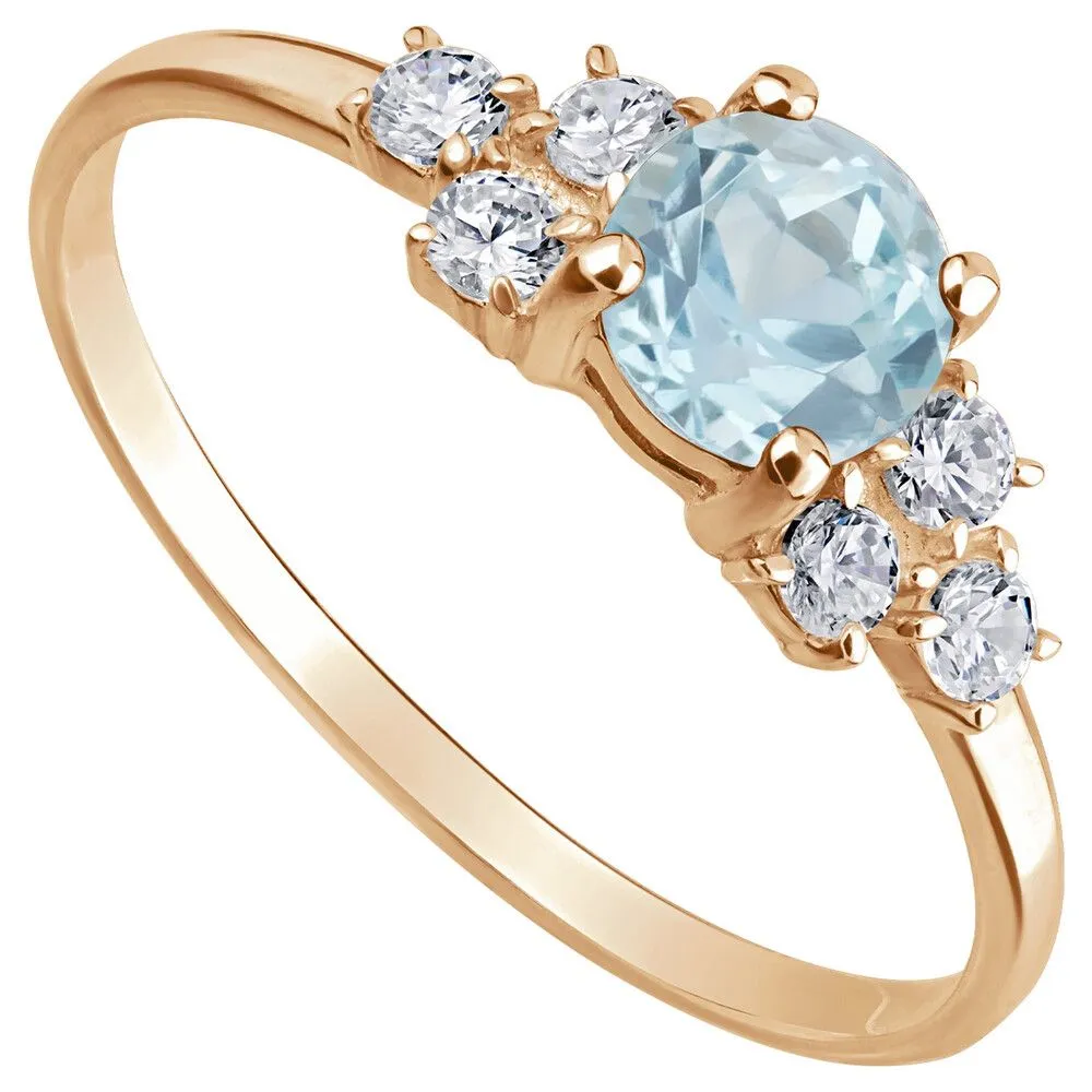 Серебряное кольцо с натуральным голубым топазом - коллекция Нова / Розовое Золото. Средний вес украшения с камнями 1.24 гр. Месторождение: Топаз (Ильменские горы, Россия). Ювелирные вставки: Топаз (Натуральный) круг 5 мм., средний вес: 0.65 карат. Белый Нанокристалл круг 2 мм. Все изделия собственного производства и имеют гарантию 12 месяцев, к каждому изделию прилагается паспорт. Арт. 8657PG
