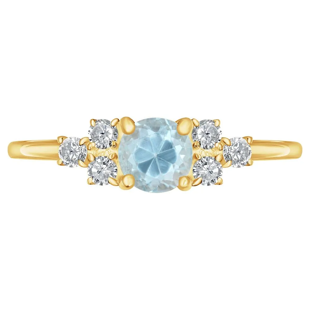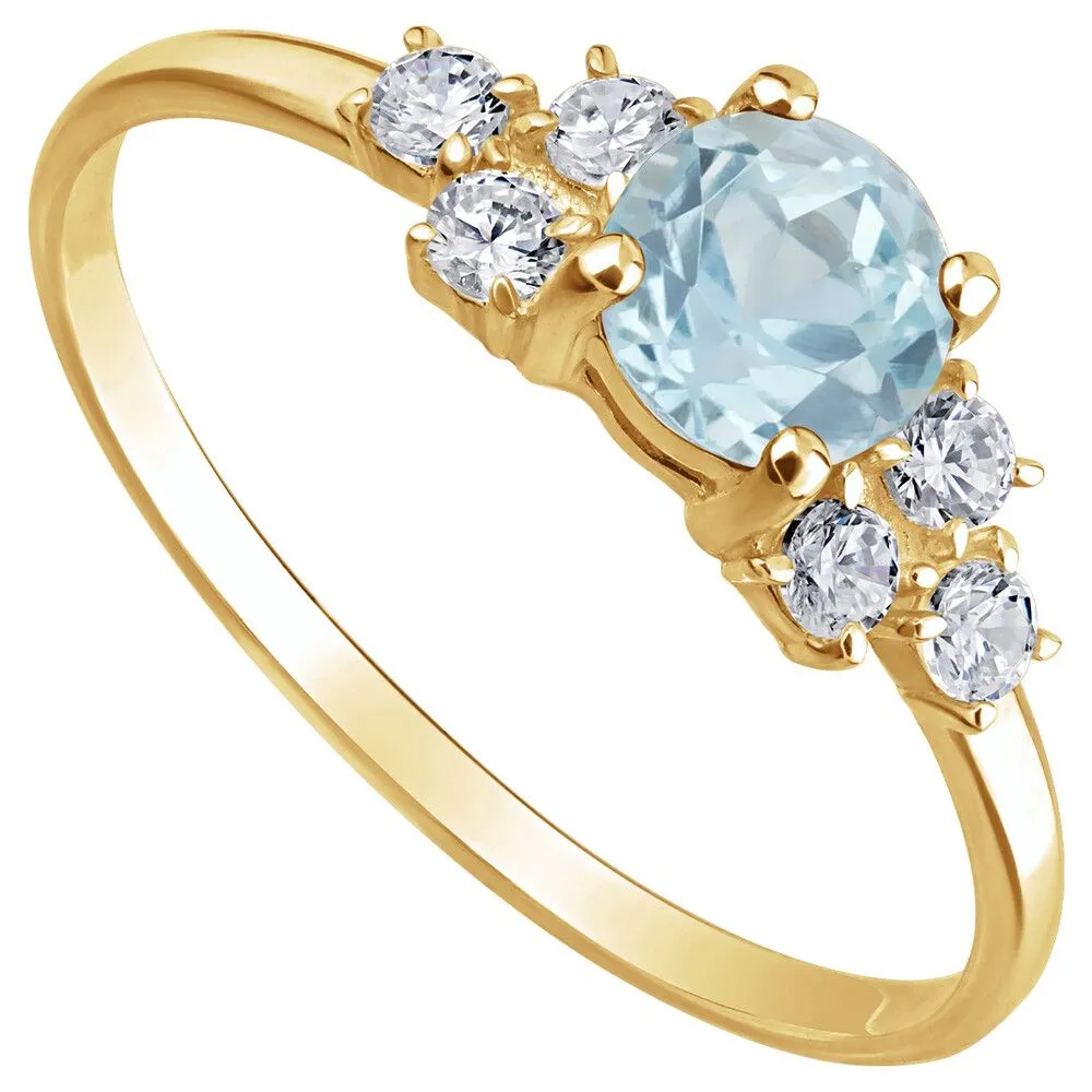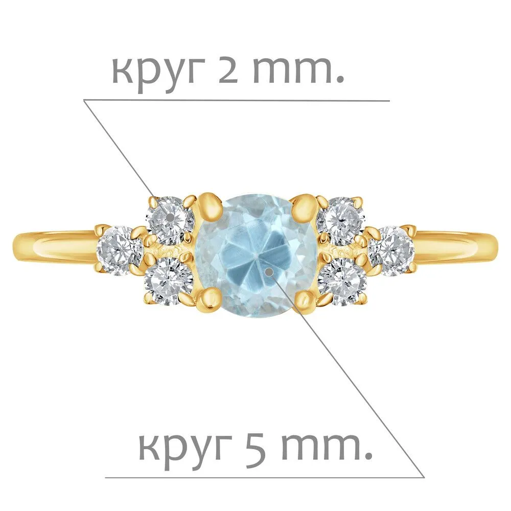 Серебряное кольцо с натуральным голубым топазом - коллекция Нова / Желтое Золото. Средний вес украшения с камнями 1.24 гр. Месторождение: Топаз (Ильменские горы, Россия). Ювелирные вставки: Топаз (Натуральный) круг 5 мм., средний вес: 0.65 карат. Белый Нанокристалл круг 2 мм. Все изделия собственного производства и имеют гарантию 12 месяцев, к каждому изделию прилагается паспорт. Арт. 8657YG