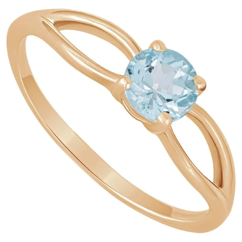 Серебряное кольцо с натуральным голубым топазом - коллекция Мона. Серебряное кольцо 925 пробы с покрытием розовое золото. Цвет покрытия соответствует швейцарскому цветовому стандарту NIHS -4N и цвету розового золота 585 в России. На последней фотографии мы разместили сравнительную фотографию 3 цвета золотого покрытия. Помимо предания золотого цвета Вашему изделию, тонкий слой золота защищает от окисления. Для более стойкого эффекта золочения и долговечности покрытия мы дополнительно наносим подслой палладия (Pd). Средний вес изделия с камнем составляет 1.58 гр. Месторождение(я): Голубой топаз (Ильменские горы, Россия). Голубой топаз (Натуральный) круг 5 мм., средний вес: 0.57 карат. Все изделия собственного производства, гарантия 12 месяцев. Арт. 7711. Топаз – камень, который отличаются особенным блеском и многообразной гаммой. Сверхтвёрдый и сверхпрочный, он наделен и лечебными, и магическими свойствами. Считалось, что амулет из топаза способен благоприятно повлиять на зачатие, потому часто дарился бездетным парам. Это камень дружбы и благоразумия, радости, оптимизма и надежды.