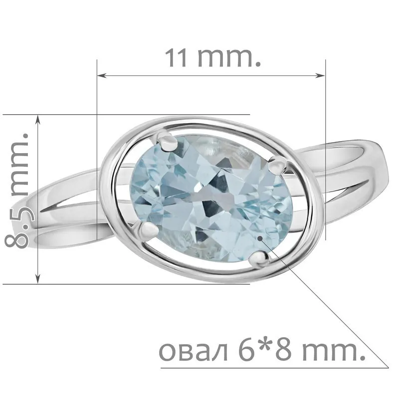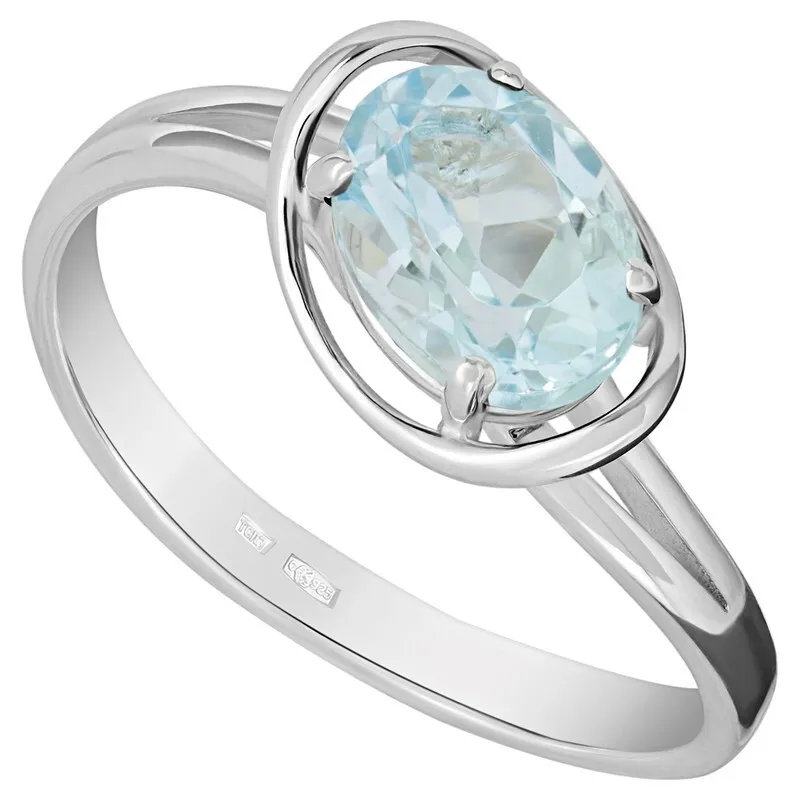 Серебряное кольцо с натуральным голубым топазом - коллекция Фрейя / покрытие Чистое Серебро