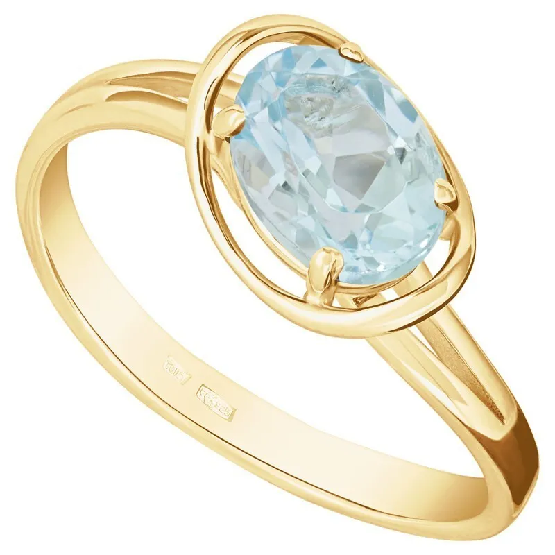 Серебряное кольцо с натуральным голубым топазом - коллекция Фрейя. Серебряное кольцо 925 пробы с покрытием желтое золото. Цвет покрытия соответствует швейцарскому цветовому стандарту NIHS -FF24ct и цвету чистого золото 999.99. На последней фотографии мы разместили сравнительную фотографию 3 цвета золотого покрытия. Помимо предания золотого цвета Вашему изделию, тонкий слой золота защищает от окисления. Для более стойкого эффекта золочения и долговечности покрытия мы дополнительно наносим подслой палладия (Pd). Средний вес изделия с камнем составляет 2.2 гр. Месторождение(я): Голубой топаз (Ильменские горы, Россия). Голубой топаз (Натуральный) овал 6*8 мм., средний вес: 1.40 карат. Все изделия собственного производства, гарантия 12 месяцев. Арт. 7732. Топаз – камень, который отличаются особенным блеском и многообразной гаммой. Сверхтвёрдый и сверхпрочный, он наделен и лечебными, и магическими свойствами. Считалось, что амулет из топаза способен благоприятно повлиять на зачатие, потому часто дарился бездетным парам. Это камень дружбы и благоразумия, радости, оптимизма и надежды.
