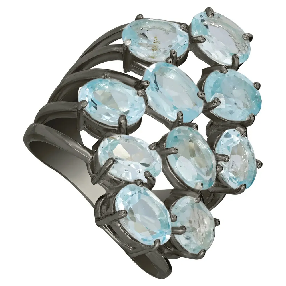 Серебряное кольцо с натуральным топазом - коллекция Аэлита, покрытие Черный Родий.