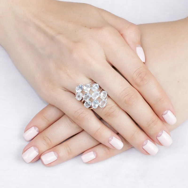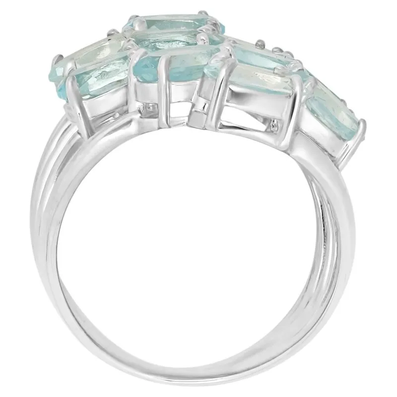 Серебряное кольцо с натуральным голубым топазом - коллекция Аэлита / покрытие Белый Родий