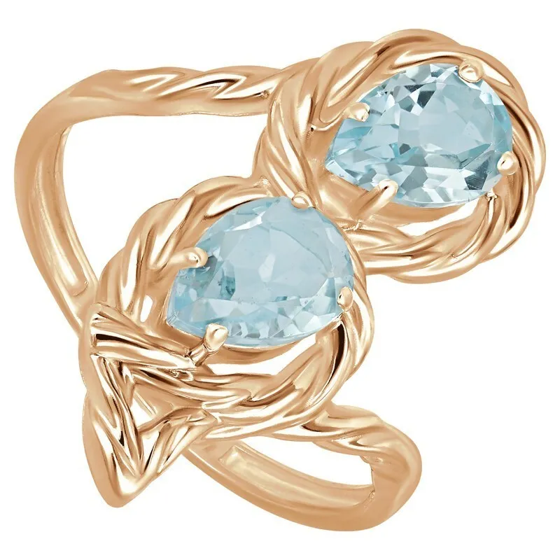 Серебряное кольцо с натуральным топазом - коллекция Ривьера. Серебряное кольцо 925 пробы с покрытием розовое золото. Цвет покрытия соответствует швейцарскому цветовому стандарту NIHS -4N и цвету розового золота 585 в России. На последней фотографии мы разместили сравнительную фотографию 3 цвета золотого покрытия. Помимо предания золотого цвета Вашему изделию, тонкий слой золота защищает от окисления. Для более стойкого эффекта золочения и долговечности покрытия мы дополнительно наносим подслой палладия (Pd). Средний вес изделия с камнями 2.9 гр. Месторождение(я): Топаз (Ильменские горы, Россия). Топаз (Натуральный) груша 5*7 мм., средний вес: 0.85 карат.
