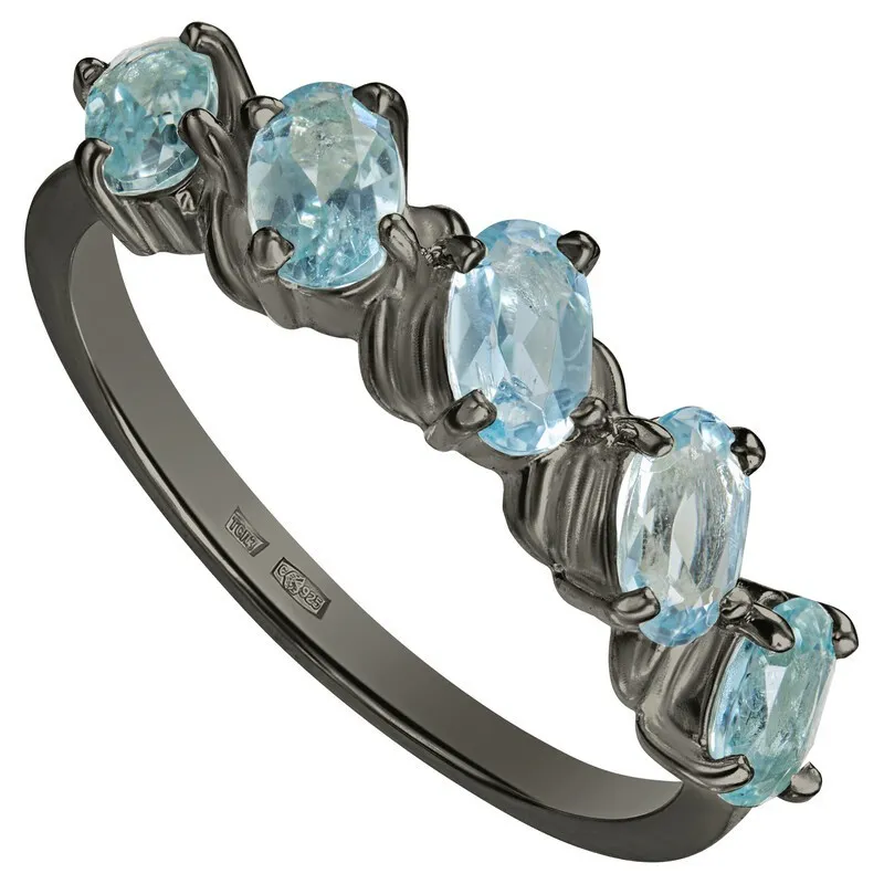 Серебряное кольцо с натуральным топазом - коллекция Колосок, покрытие Черный Родий.