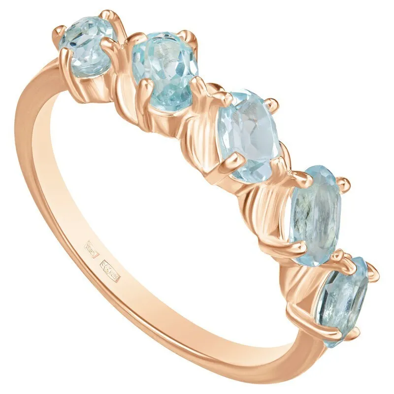 Серебряное кольцо с натуральным топазом - коллекция Колосок. Серебряное кольцо 925 пробы с покрытием красное золото. Цвет покрытия соответствует швейцарскому цветовому стандарту NIHS -5N и цвету красного золота 585 в России. На последней фотографии мы разместили сравнительную фотографию 3 цвета золотого покрытия. Помимо предания золотого цвета Вашему изделию, тонкий слой золота защищает от окисления. Для более стойкого эффекта золочения и долговечности покрытия мы дополнительно наносим подслой палладия (Pd). Средний вес изделия с камнями 2.2 гр. Месторождение: Голубой топаз (Ильменские горы, Россия). Топаз (Натуральный) овал 3*5 мм., средний вес: 0.22 карат. Все изделия собственного производства, гарантия 12 месяцев. Арт. 7990