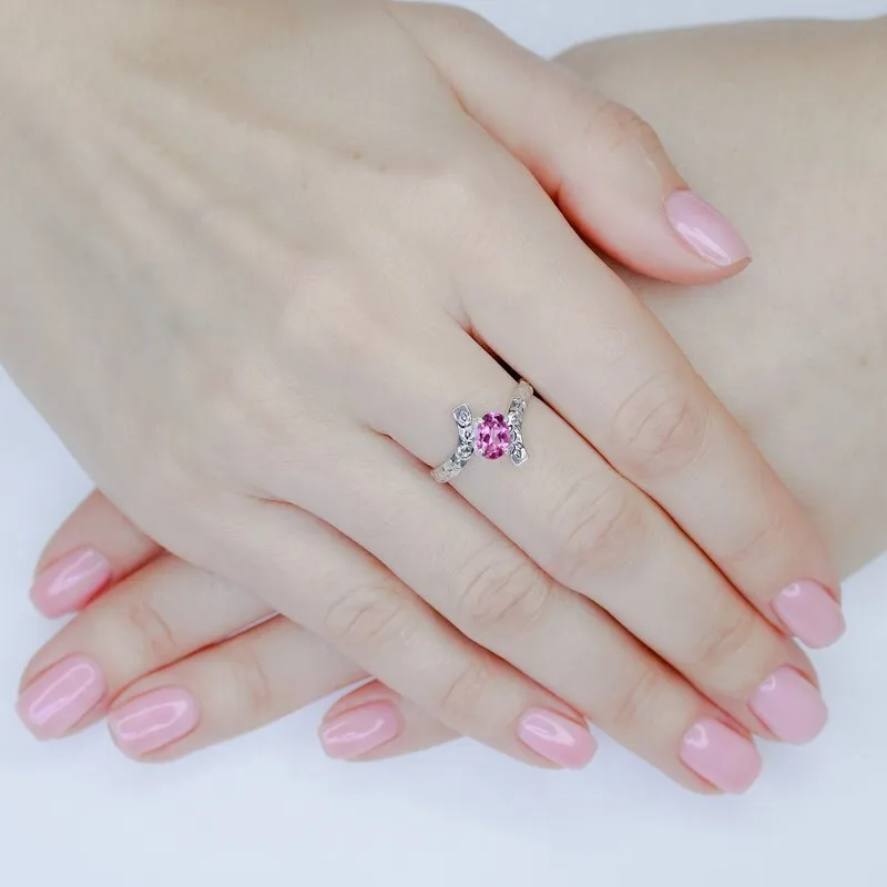 Серебряное кольцо с натуральным топазом (розовым) - коллекция Тея. Средний вес изделия с камнями 2.5 гр. Месторождение: Топаз (Ильменские горы, Россия) Топаз (Натуральный) овал 5*7 мм., средний вес: 0.88 карат. Все изделия собственного производства и имеют гарантию 12 месяцев. Арт. 8062