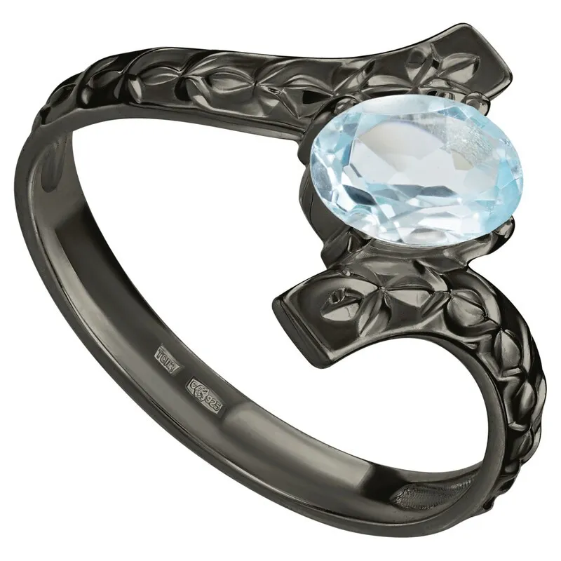 Серебряное кольцо с натуральным голубым топазом - коллекция Тея, покрытие Черный Родий.