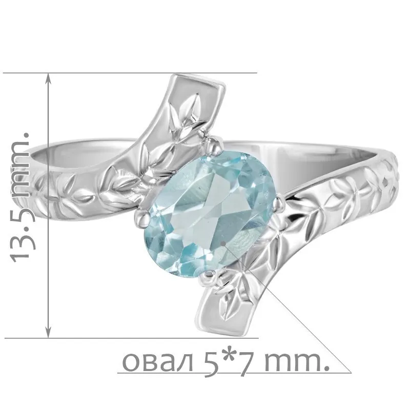 Серебряное кольцо с натуральным голубым топазом - коллекция Тея. Средний вес изделия с камнями 2.44 гр. Месторождение: Голубой топаз (Ильменские горы, Россия) Топаз (Натуральный) овал 5*7 мм., средний вес: 0.89 карат. Все изделия собственного производства, гарантия 12 месяцев. Арт. 8063