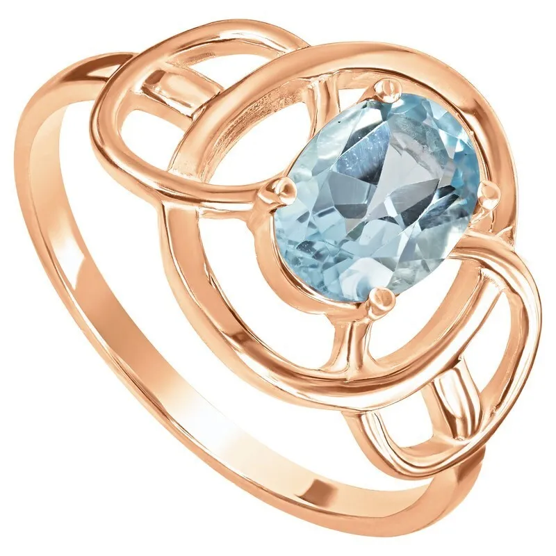 Серебряное кольцо с натуральным голубым топазом - коллекция Юнона. Серебряное кольцо 925 пробы с покрытием красное золото. Цвет покрытия соответствует швейцарскому цветовому стандарту NIHS -5N и цвету красного золота 585 в России. На последней фотографии мы разместили сравнительную фотографию 3 цвета золотого покрытия. Помимо предания золотого цвета Вашему изделию, тонкий слой золота защищает от окисления. Для более стойкого эффекта золочения и долговечности покрытия мы дополнительно наносим подслой палладия (Pd). Средний вес изделия с камнями 2.54 гр. Месторождение: Топаз (Ильменские горы, Россия). Топаз (Натуральный) овал 6*8 мм., средний вес: 1.62 карат. Все изделия собственного производства, гарантия 12 месяцев. Арт. 8416. Топаз – камень, который отличаются особенным блеском и многообразной гаммой. Сверхтвёрдый и сверхпрочный, он наделен и лечебными, и магическими свойствами. Считалось, что амулет из топаза способен благоприятно повлиять на зачатие, потому часто дарился бездетным парам. Это камень дружбы и благоразумия, радости, оптимизма и надежды.