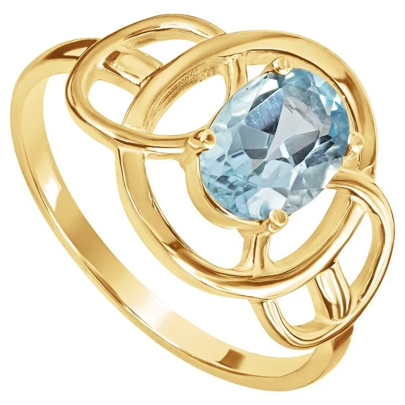Серебряное кольцо с натуральным голубым топазом - коллекция Юнона. Серебряное кольцо 925 пробы с покрытием желтое золото. Цвет покрытия соответствует швейцарскому цветовому стандарту NIHS -FF24ct и цвету чистого золото 999.99. На последней фотографии мы разместили сравнительную фотографию 3 цвета золотого покрытия. Помимо предания золотого цвета Вашему изделию, тонкий слой золота защищает от окисления. Для более стойкого эффекта золочения и долговечности покрытия мы дополнительно наносим подслой палладия (Pd). Средний вес изделия с камнями 2.54 гр. Месторождение: Топаз (Ильменские горы, Россия). Топаз (Натуральный) овал 6*8 мм., средний вес: 1.62 карат. Все изделия собственного производства, гарантия 12 месяцев. Арт. 8416. Топаз – камень, который отличаются особенным блеском и многообразной гаммой. Сверхтвёрдый и сверхпрочный, он наделен и лечебными, и магическими свойствами. Считалось, что амулет из топаза способен благоприятно повлиять на зачатие, потому часто дарился бездетным парам. Это камень дружбы и благоразумия, радости, оптимизма и надежды.