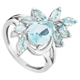 Серебряное кольцо "Элегия" с натуральным голубым топазом, без покрытия. Средний вес украшения с камнями 3,43 гр. Месторождение(я) камней: Топаз (Ильменские горы, Россия). Топаз (Натуральный) груша: 7*10 мм., средний вес: 2,25 карат. Топаз (Натуральный) маркиз: 3*6 мм., средний вес: 0,3 карат. Размер лицевой части: 15*23 мм. Все изделия собственного производства и имеют гарантию 12 месяцев, к каждому изделию прилагается паспорт. Арт. 6612NP