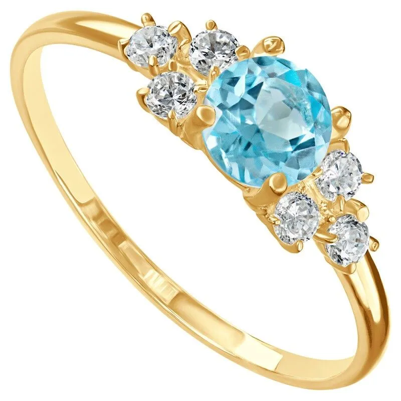 Серебряное кольцо с натуральным топазом (Swiss) - коллекция Нова / покрытие Желтое Золото.Средний вес украшения с камнями 1.23 гр.Месторождение(я): Топаз (Ильменские горы, Россия).Ювелирные вставки:Топаз (Натуральный) круг 5 мм., средний вес: 0.58 карат.Белый Нанокристалл круг 2 мм., средний вес: 0.06 карат.Все изделия собственного производства и имеют гарантию 12 месяцев. Арт. 8660YG. Топаз – камень, который отличаются особенным блеском и многообразной гаммой. Сверхтвёрдый и сверхпрочный, он наделен и лечебными, и магическими свойствами. Считалось, что амулет из топаза способен благоприятно повлиять на зачатие, потому часто дарился бездетным парам. Это камень дружбы и благоразумия, радости, оптимизма и надежды.