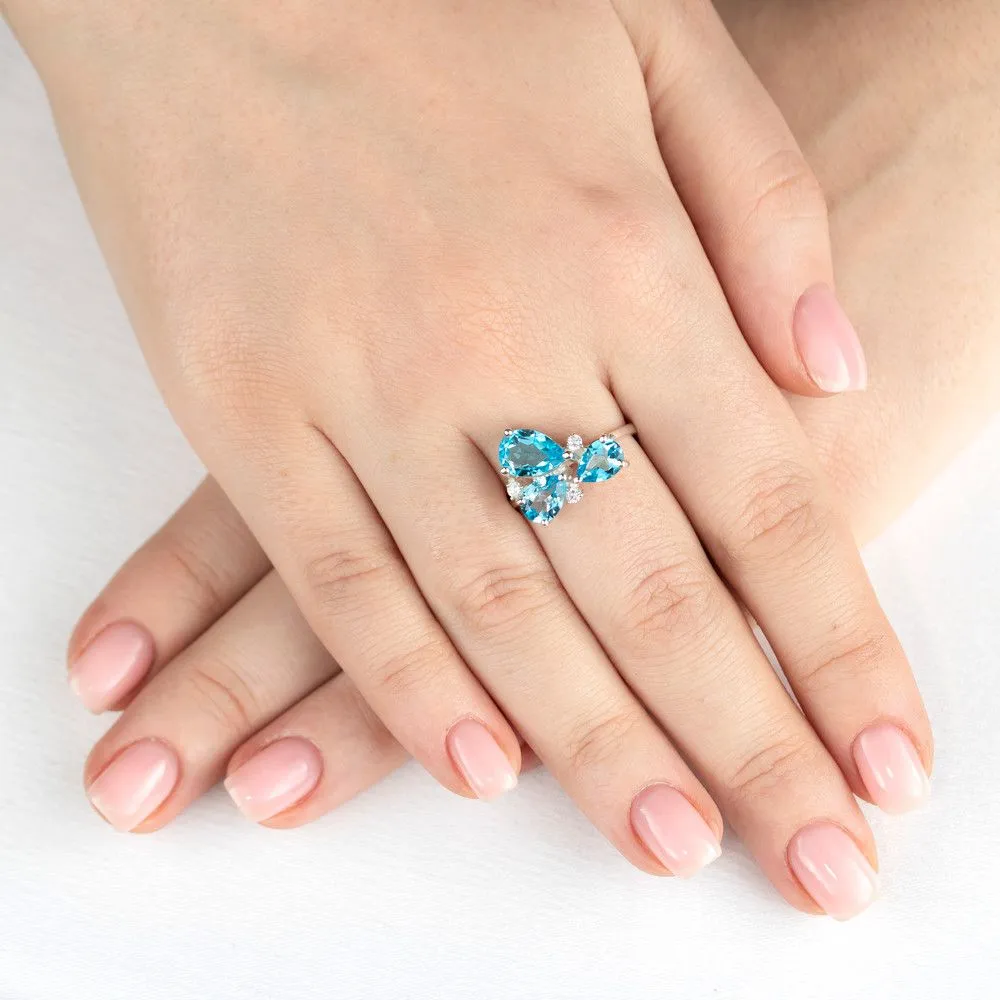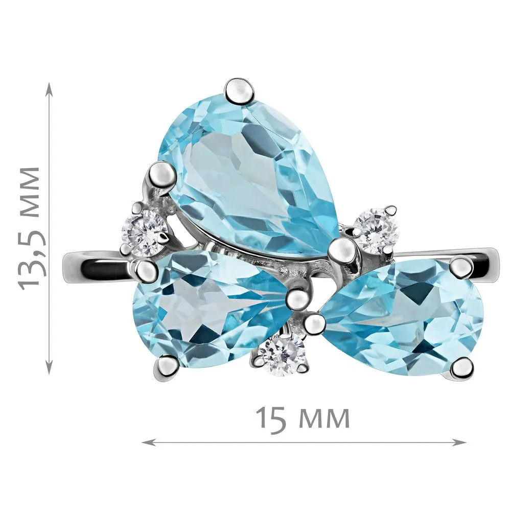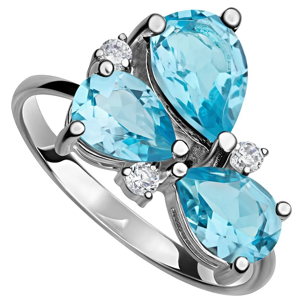 Серебряное кольцо с натуральным голубым топазом (Swiss) - коллекция Капель / покрытие Палладий. Средний вес украшения с камнями 3.08 гр. Месторождение: Топаз (Намибия) Ювелирные вставки: Топаз (Натуральный) груша 6*9 мм., средний вес: 1.45 карат. Топаз (Натуральный) груша 5*7 мм., средний вес: 0.78 карат. Все изделия собственного производства и имеют гарантию 12 месяцев. Арт. 8768PD. Топаз – камень, который отличаются особенным блеском и многообразной гаммой. Сверхтвёрдый и сверхпрочный, он наделен и лечебными, и магическими свойствами. Считалось, что амулет из топаза способен благоприятно повлиять на зачатие, потому часто дарился бездетным парам. Это камень дружбы и благоразумия, радости, оптимизма и надежды.