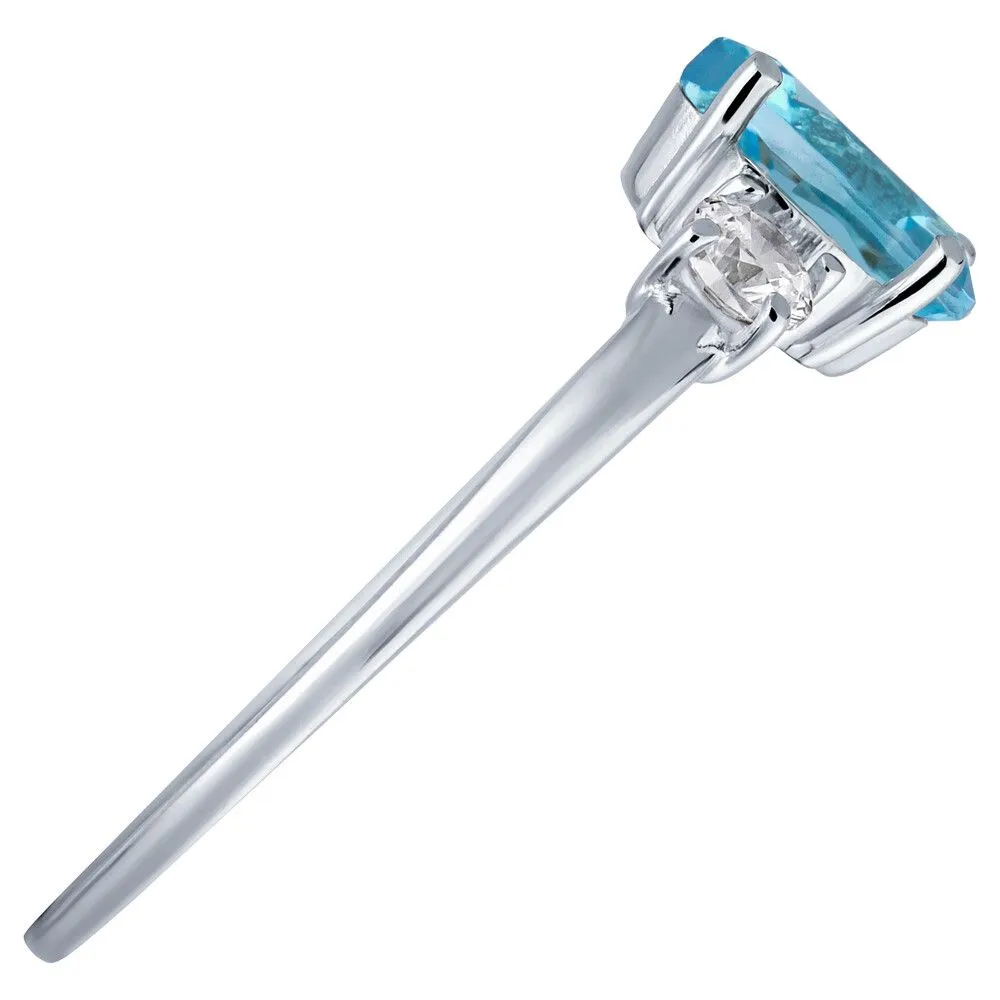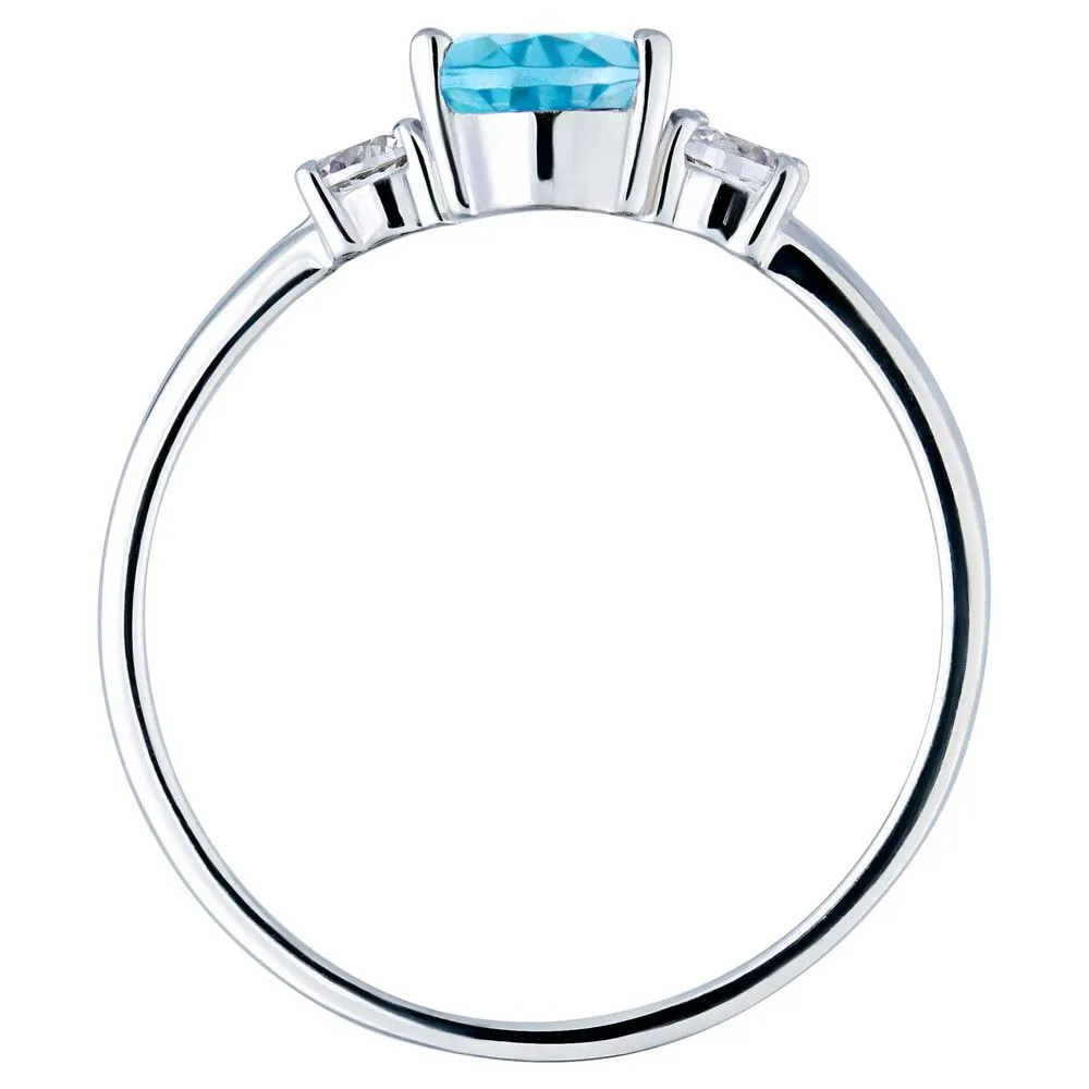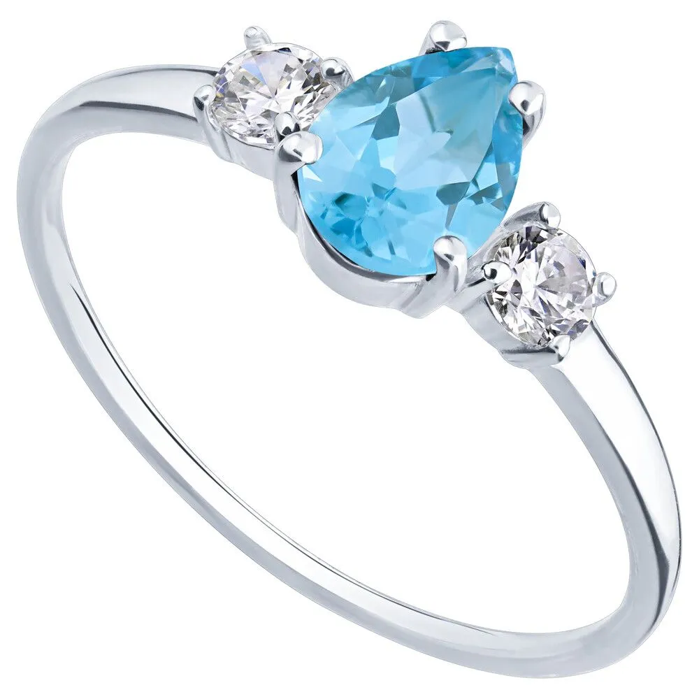 Серебряное кольцо с натуральным голубым топазом (Swiss) - коллекция Алсу (малая) / Чистое Серебро. Средний вес украшения с камнями 1.35 гр. Месторождение: Топаз (Намибия). Ювелирные вставки: Топаз (Натуральный) груша 5*7 мм., средний вес: 0.81 карат. Белый Нанокристалл круг 3 мм. Все изделия собственного производства и имеют гарантию 12 месяцев, к каждому изделию прилагается паспорт. Арт. 8809AG