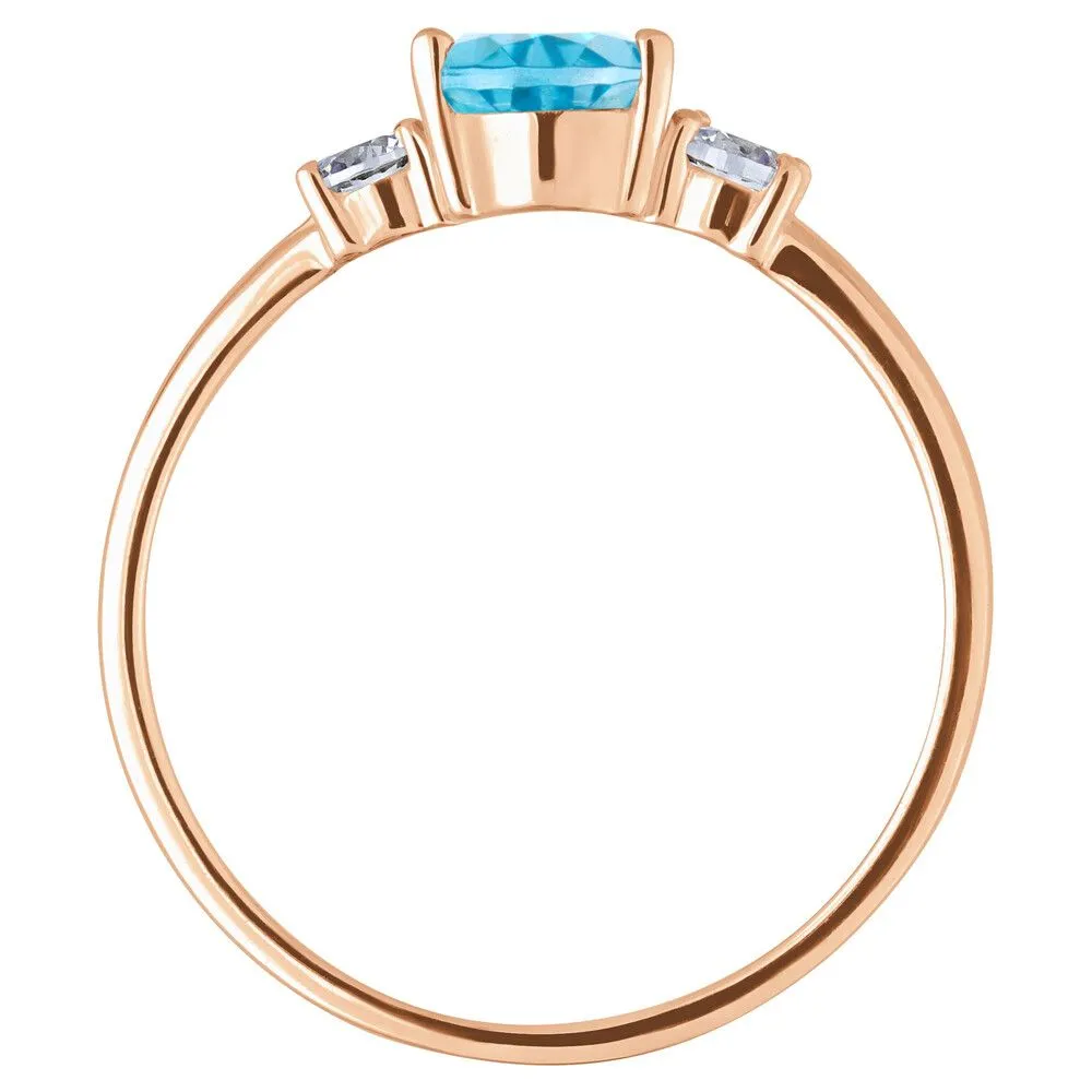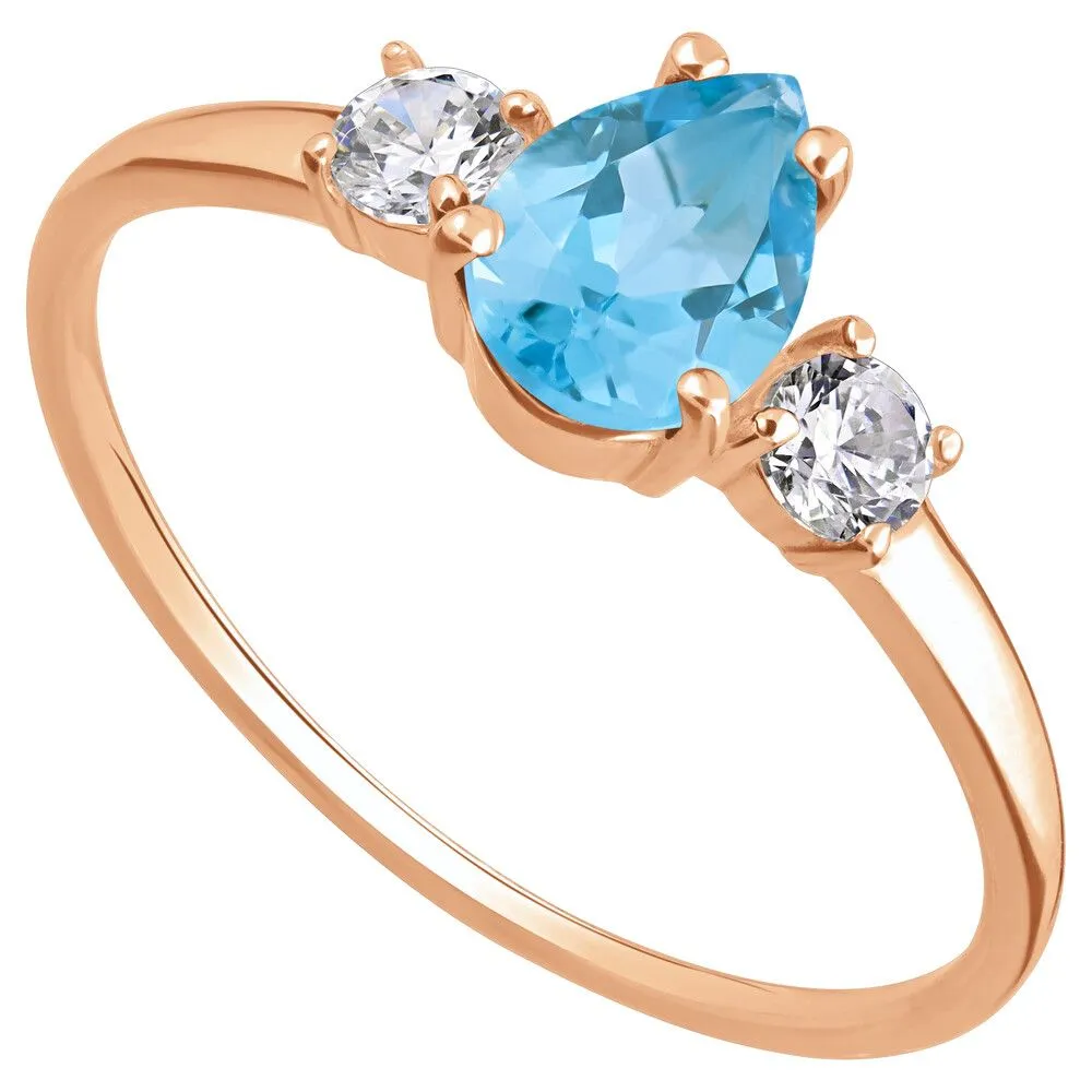 Серебряное кольцо с натуральным голубым топазом (Swiss) - коллекция Алсу (малая) / Красное Золото. Средний вес украшения с камнями 1.35 гр. Месторождение: Топаз (Намибия). Ювелирные вставки: Топаз (Натуральный) груша 5*7 мм., средний вес: 0.81 карат. Белый Нанокристалл круг 3 мм. Все изделия собственного производства и имеют гарантию 12 месяцев, к каждому изделию прилагается паспорт. Арт. 8809RG