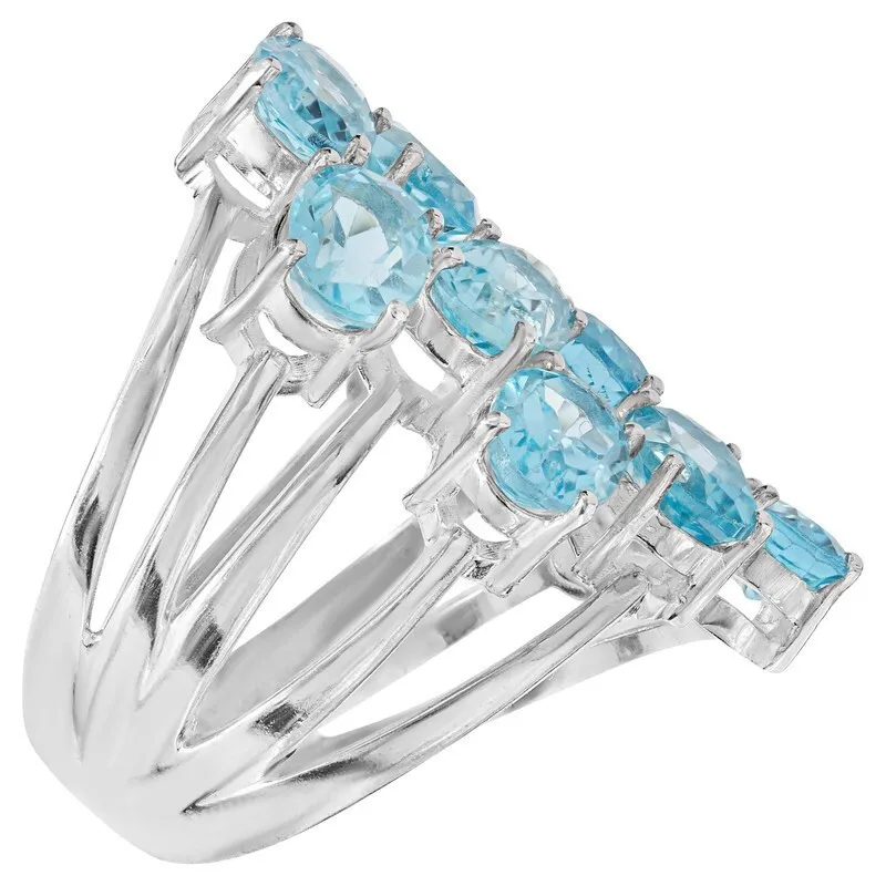 Серебряное кольцо с натуральным голубым топазом (Swiss) - коллекция Аэлита / Без покрытия