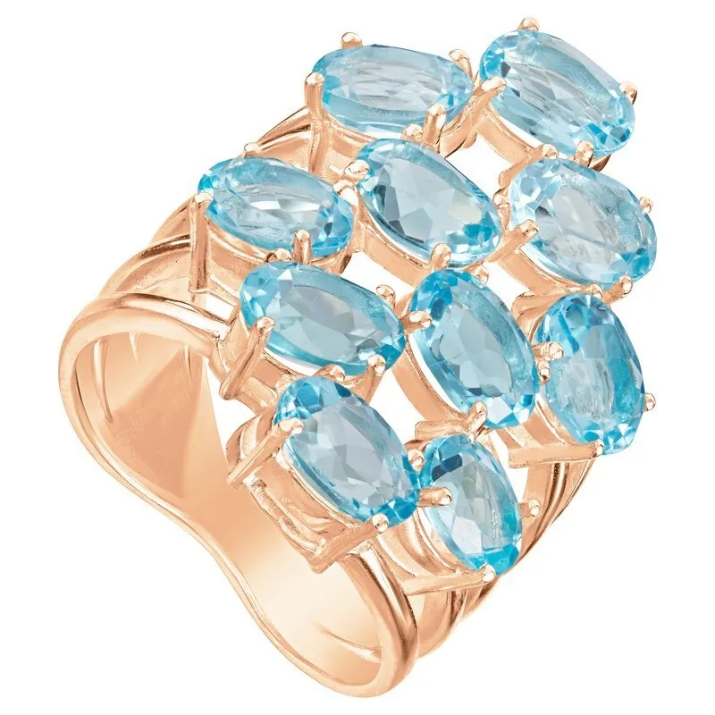 Серебряное кольцо с натуральным голубым топазом (Swiss) - коллекция Аэлита / покрытие Красное Золото