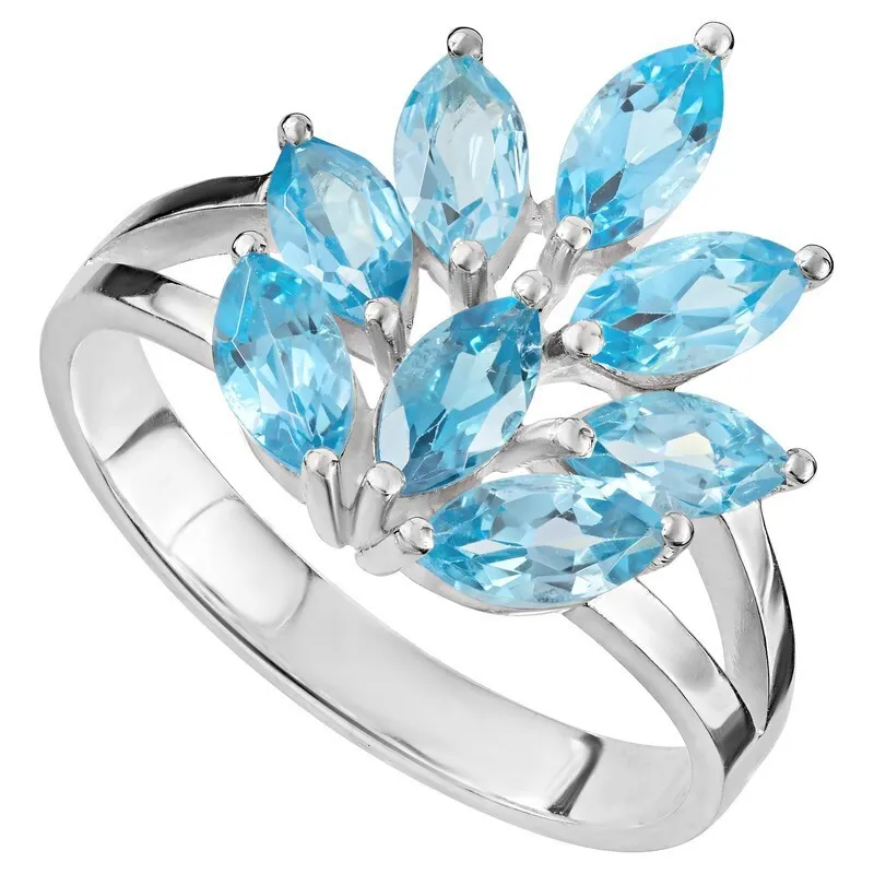 Серебряное кольцо с натуральным голубым топазом (Swiss) - коллекция Искра. Средний вес украшения с камнями 2.37 гр. Месторождение: Голубой топаз (Шри-Ланка). Топаз (Натуральный) маркиз 3*6 мм., средний вес: 0.28 карат. Все изделия собственного производства и имеют гарантию 12 месяцев. Арт. 8469. Топаз – камень, который отличаются особенным блеском и многообразной гаммой. Сверхтвёрдый и сверхпрочный, он наделен и лечебными, и магическими свойствами. Считалось, что амулет из топаза способен благоприятно повлиять на зачатие, потому часто дарился бездетным парам. Это камень дружбы и благоразумия, радости, оптимизма и надежды.