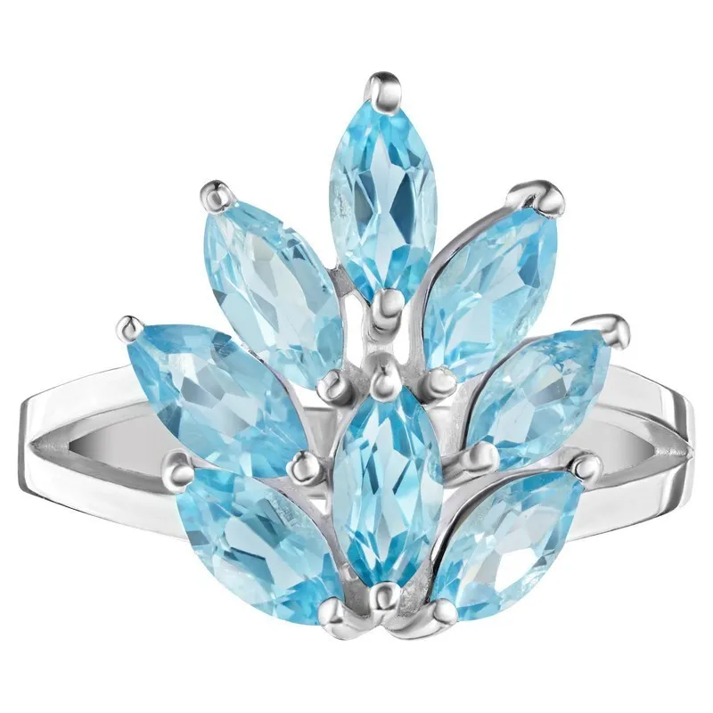 Серебряное кольцо с натуральным голубым топазом (Swiss) - коллекция Искра. Средний вес украшения с камнями 2.37 гр. Месторождение: Голубой топаз (Шри-Ланка). Топаз (Натуральный) маркиз 3*6 мм., средний вес: 0.28 карат. Все изделия собственного производства и имеют гарантию 12 месяцев. Арт. 8469. Топаз – камень, который отличаются особенным блеском и многообразной гаммой. Сверхтвёрдый и сверхпрочный, он наделен и лечебными, и магическими свойствами. Считалось, что амулет из топаза способен благоприятно повлиять на зачатие, потому часто дарился бездетным парам. Это камень дружбы и благоразумия, радости, оптимизма и надежды.