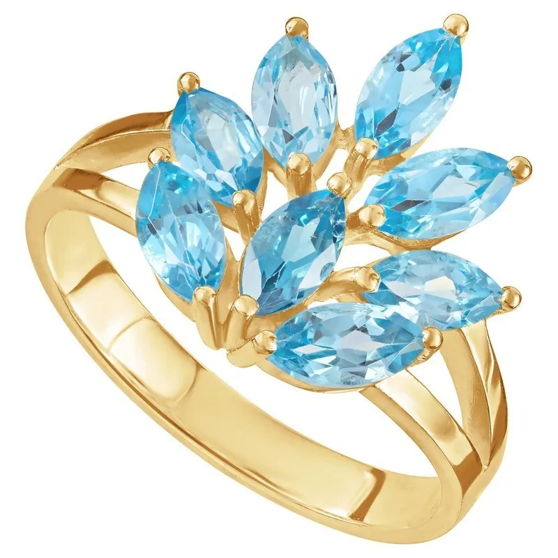 Серебряное кольцо с натуральным голубым топазом (Swiss) - коллекция Искра / покрытие Желтое Золото