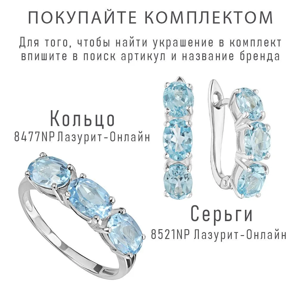 Серебряное кольцо с натуральным голубым топазом (Swiss) - коллекция Муза. Средний вес украшения с камнями 2.34 гр. Месторождение: Голубой топаз (Шри-Ланка). Топаз (Натуральный) овал 5*7 мм., средний вес: 0.95 карат. Все изделия собственного производства и имеют гарантию 12 месяцев. Арт. 8477. Топаз – камень, который отличаются особенным блеском и многообразной гаммой. Сверхтвёрдый и сверхпрочный, он наделен и лечебными, и магическими свойствами. Считалось, что амулет из топаза способен благоприятно повлиять на зачатие, потому часто дарился бездетным парам. Это камень дружбы и благоразумия, радости, оптимизма и надежды.