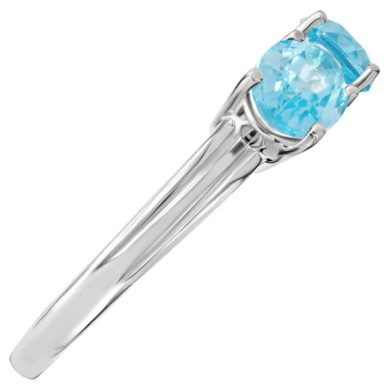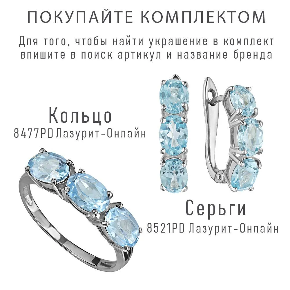 Серебряное кольцо с натуральным голубым топазом (Swiss) - коллекция Муза. Средний вес украшения с камнями 2.34 гр. Месторождение: Голубой топаз (Шри-Ланка). Топаз (Натуральный) овал 5*7 мм., средний вес: 0.95 карат. Все изделия собственного производства и имеют гарантию 12 месяцев. Арт. 8477. Топаз – камень, который отличаются особенным блеском и многообразной гаммой. Сверхтвёрдый и сверхпрочный, он наделен и лечебными, и магическими свойствами. Считалось, что амулет из топаза способен благоприятно повлиять на зачатие, потому часто дарился бездетным парам. Это камень дружбы и благоразумия, радости, оптимизма и надежды.