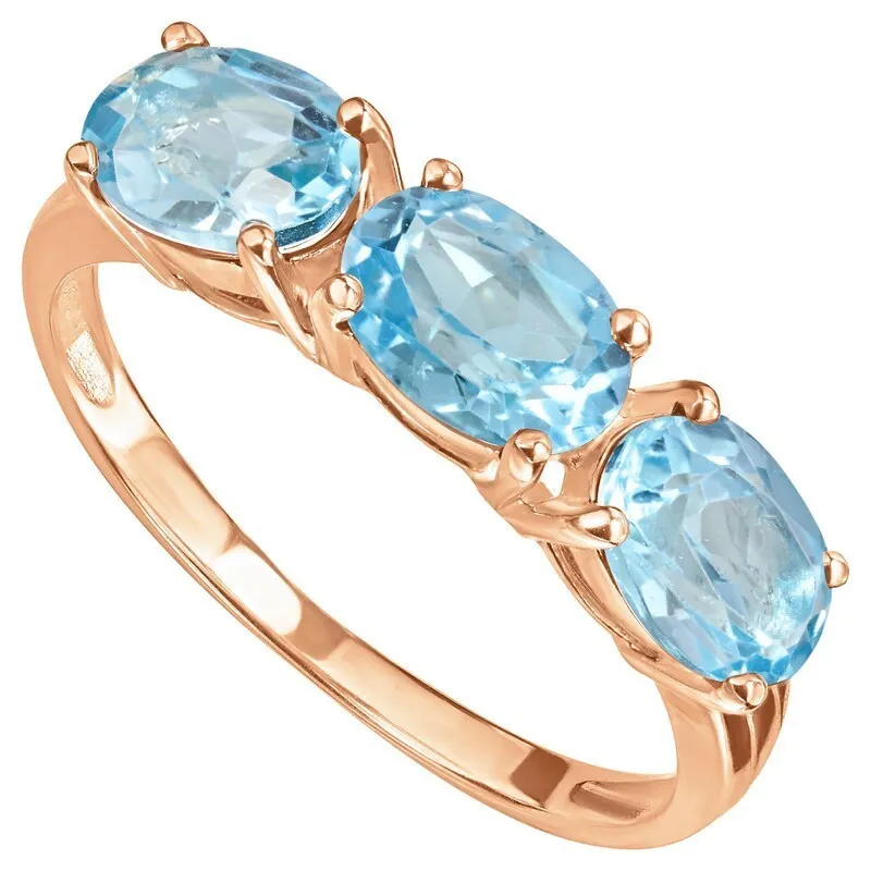 Серебряное кольцо с натуральным голубым топазом (Swiss) - коллекция Муза / покрытие Красное Золото