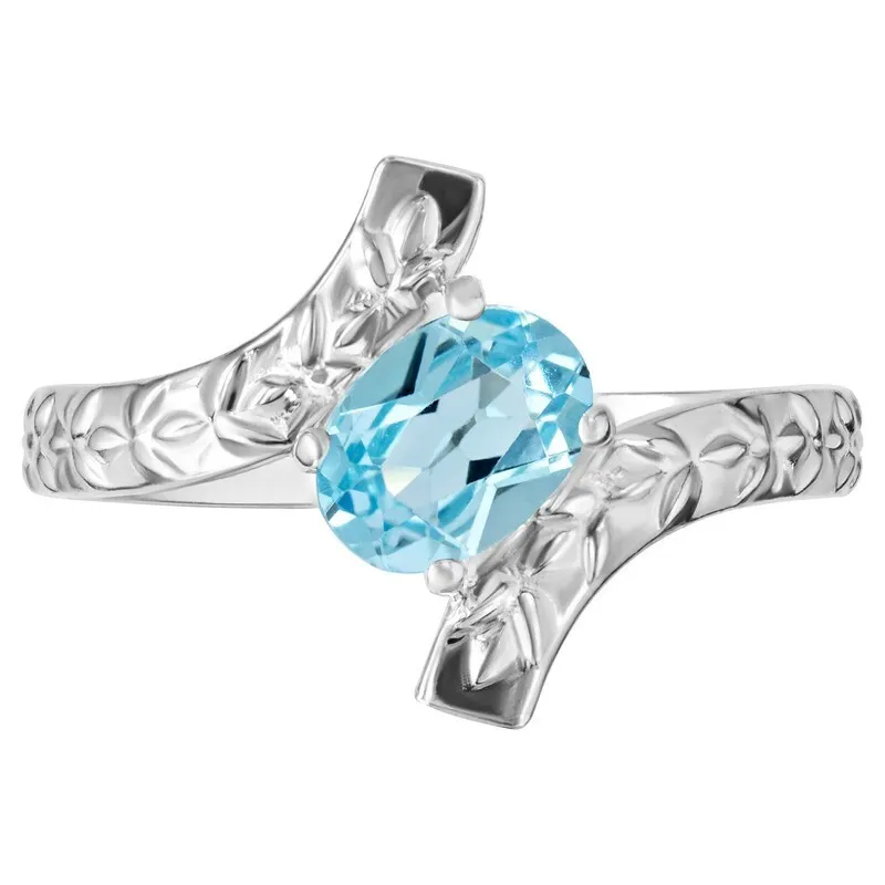 Серебряное кольцо с натуральным голубым топазом (Swiss) - коллекция Тея / покрытие Чистое Серебро