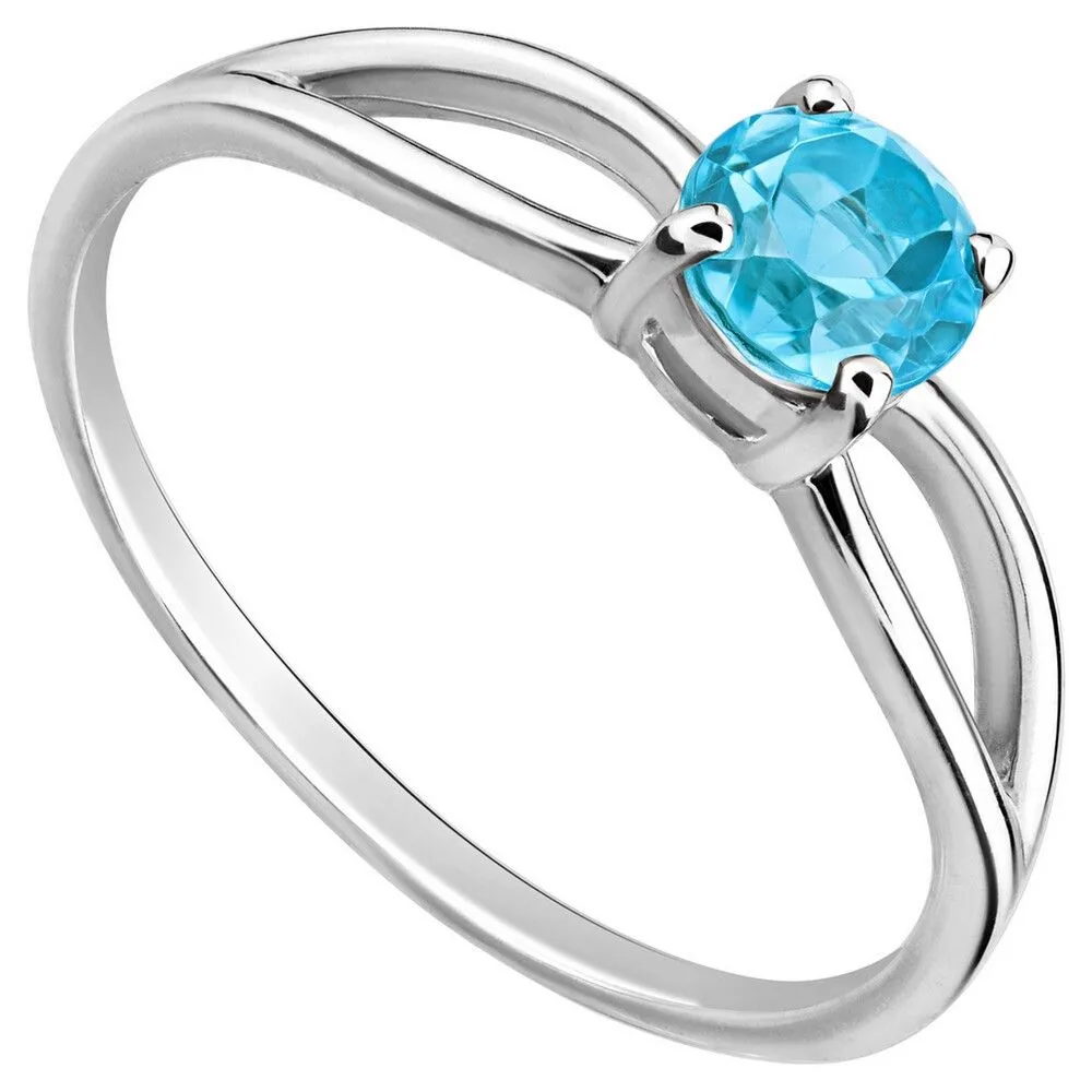 Серебряное кольцо с натуральным голубым топазом (Swiss) - коллекция Мона / Белый Родий. Средний вес украшения с камнями 1.35 гр. Месторождение: Топаз (Намибия). Ювелирные вставки: Топаз (Натуральный) круг 5 мм., средний вес: 0.64 карат. Все изделия собственного производства и имеют гарантию 12 месяцев, к каждому изделию прилагается паспорт. Арт. 8762WR