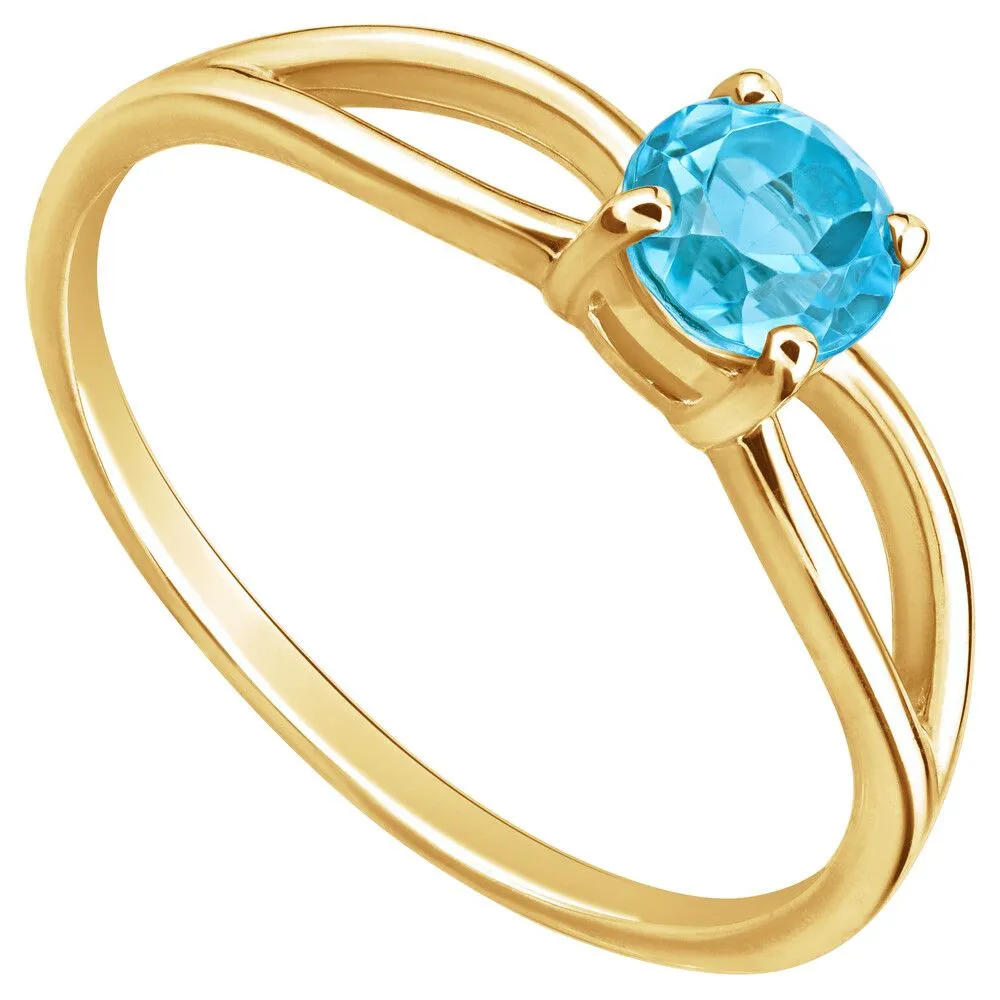Серебряное кольцо с натуральным голубым топазом (Swiss) - коллекция Мона / Желтое Золото. Средний вес украшения с камнями 1.35 гр. Месторождение: Топаз (Намибия). Ювелирные вставки: Топаз (Натуральный) круг 5 мм., средний вес: 0.64 карат. Все изделия собственного производства и имеют гарантию 12 месяцев, к каждому изделию прилагается паспорт. Арт. 8762YG