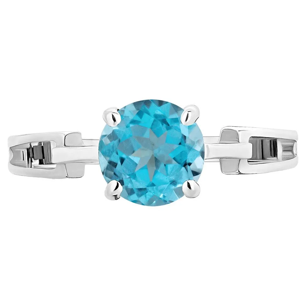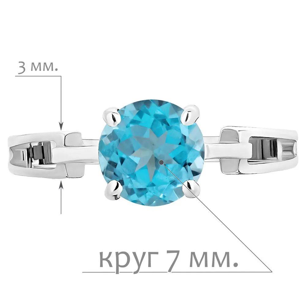Серебряное кольцо с натуральным голубым топазом (Swiss) - коллекция Классик / Белый Родий. Средний вес украшения с камнями 1.94 гр. Месторождение: Топаз (Намибия). Ювелирные вставки: Топаз (Натуральный) круг 7 мм., средний вес: 1.75 карат. Все изделия собственного производства и имеют гарантию 12 месяцев, к каждому изделию прилагается паспорт. Арт. 8884WR