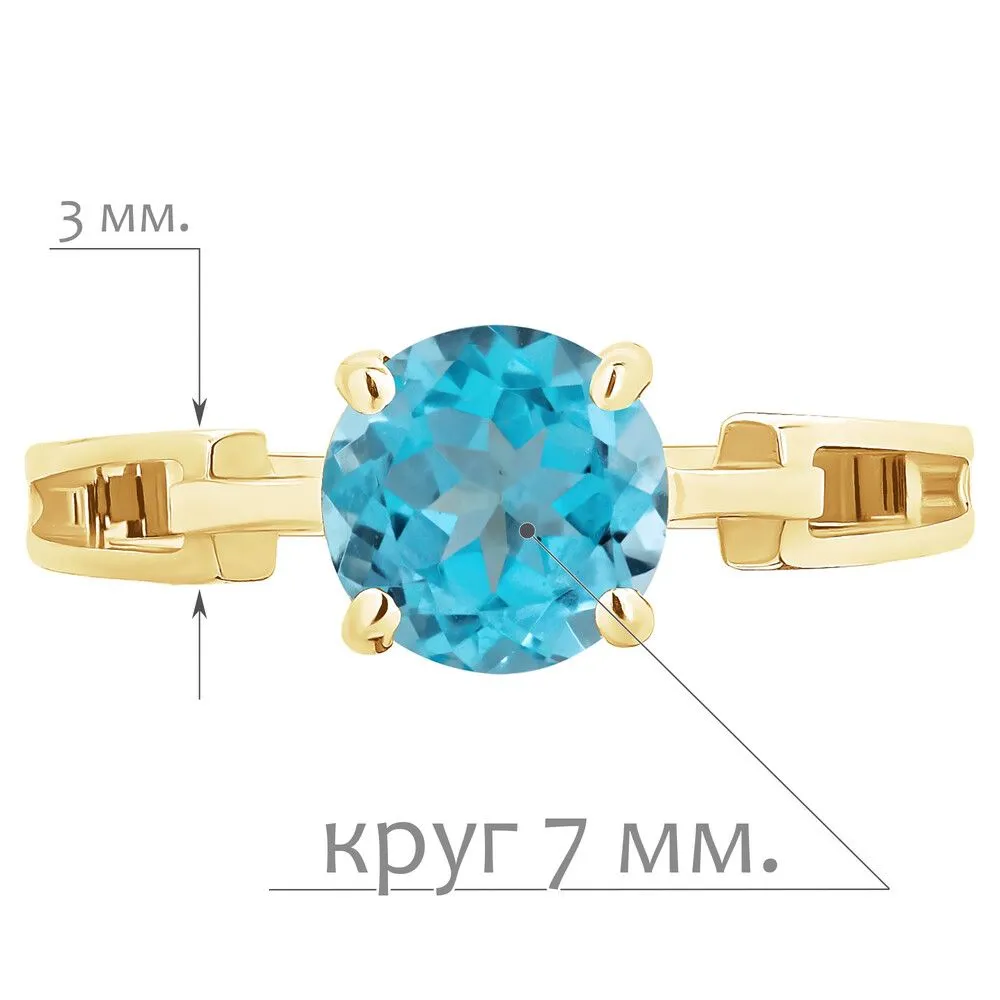 Серебряное кольцо с натуральным голубым топазом (Swiss) - коллекция Классик / Желтое Золото. Средний вес украшения с камнями 1.94 гр. Месторождение: Топаз (Намибия). Ювелирные вставки: Топаз (Натуральный) круг 7 мм., средний вес: 1.75 карат. Все изделия собственного производства и имеют гарантию 12 месяцев, к каждому изделию прилагается паспорт. Арт. 8884YG