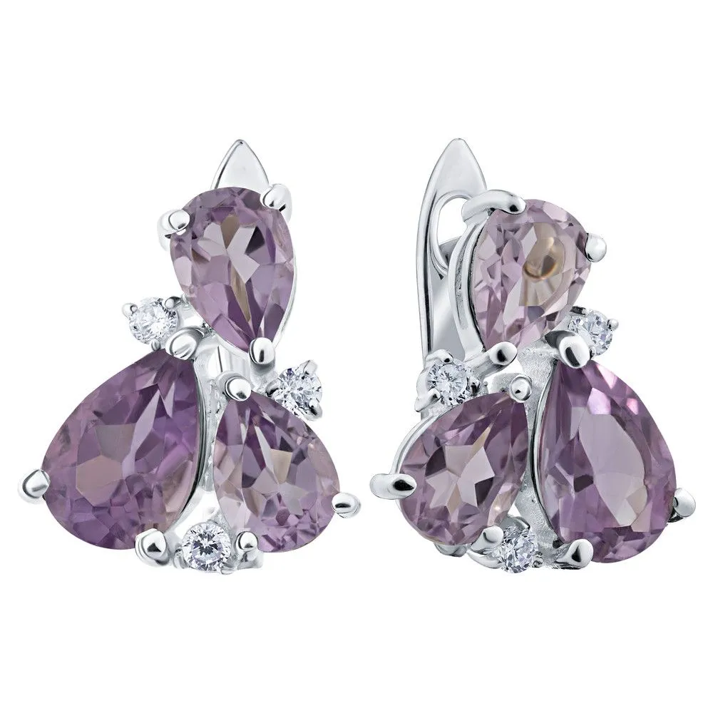 Серебряные серьги Капель с натуральным аметистом, покрытие Чистое Серебро. Средний вес украшения с камнями 5,62 гр. Месторождение(я) камней: Аметист (Приполярный Урал, Россия). Аметист (Натуральный) груша: 6*9 мм., средний вес 1,00 карат. Аметист (Натуральный) груша: 5*7 мм., средний вес 0,80 карат. Циркон белый (Натуральный) круг: 2 мм., средний вес 0,05 карат. Размер лицевой части: 13*15 мм. Все изделия собственного производства и имеют гарантию 12 месяцев. Арт. 6684AG . Аметист — прозрачный или полупрозрачный камень фиолетовых оттенков, подвид кварца. Он гармонизирует разум, снимает стресс, улучшает кровообращение, способствует умственному развитию и личностному росту. Считается, что он также оберегает от головной боли и бессонницы, служит противоядием, помогает избавиться от алкоголизма и наделяет владельца проницательностью, раскрывая «третий глаз» (за который отвечает чакра аджна). В медитации помогает расслабиться и успокоиться. Положенный под подушку, аметист приносит хорошие сны.