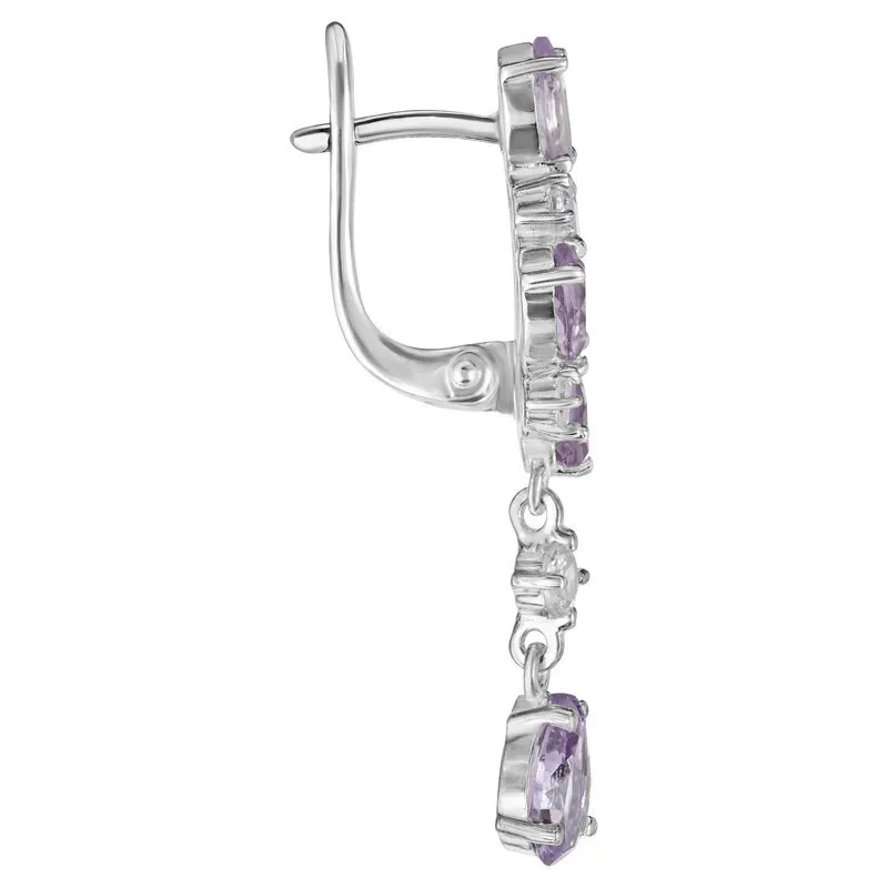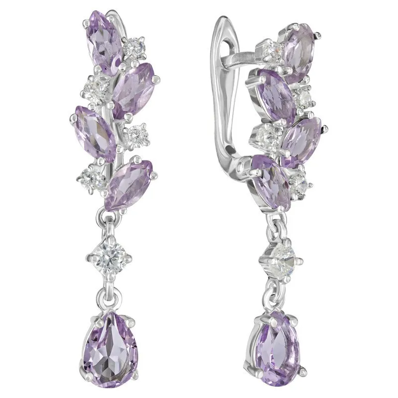 Серебряные серьги с натуральным аметистом - коллекция Росинка. Средний вес изделия с камнями 4.29 гр. Месторождение: Аметист (Приполярный Урал, Россия). Аметист (Натуральный) груша 5*7 мм., средний вес: 0.65 карат. Все изделия собственного производства. Гарантия 12 месяцев.Арт. 8418.