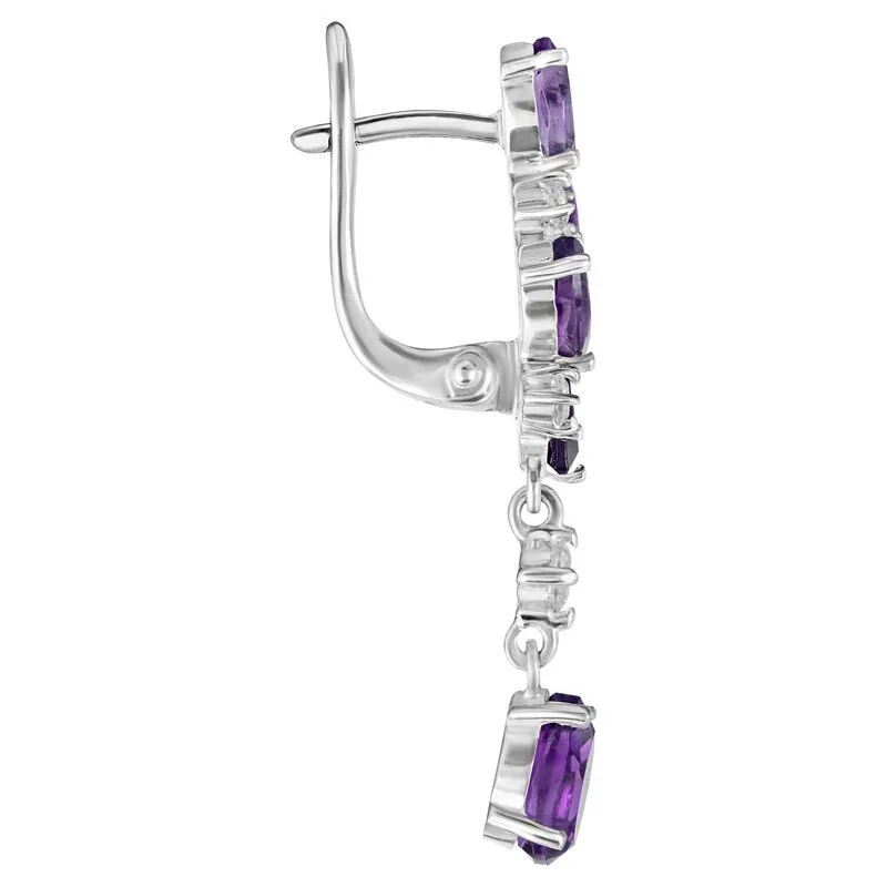 Серебряные серьги с натуральным аметистом (темным) - коллекция Росинка / покрытие Белый Родий