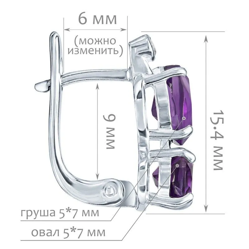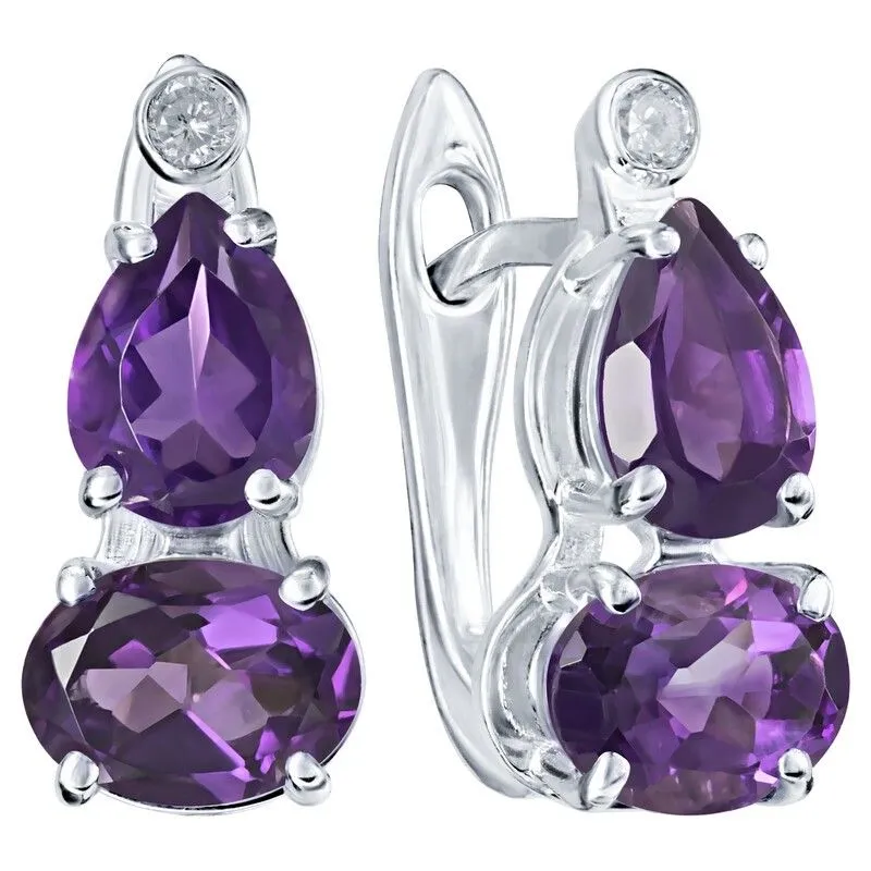 Серебряные серьги с натуральным аметистом (темный) - коллекция Сансара / покрытие Чистое Серебро.Средний вес украшения с камнями 3.29 гр.Месторождение(я): Аметист (Приполярный Урал, Россия).Ювелирные вставки:Аметист (Натуральный) овал 5*7 мм., средний вес: 0.72 карат.Аметист (Натуральный) груша 5*7 мм., средний вес: 0.65 карат.Белый Нанокристалл круг 2 мм., средний вес: 0.06 карат.Все изделия собственного производства и имеют гарантию 12 месяцев. Арт. 8691AG .