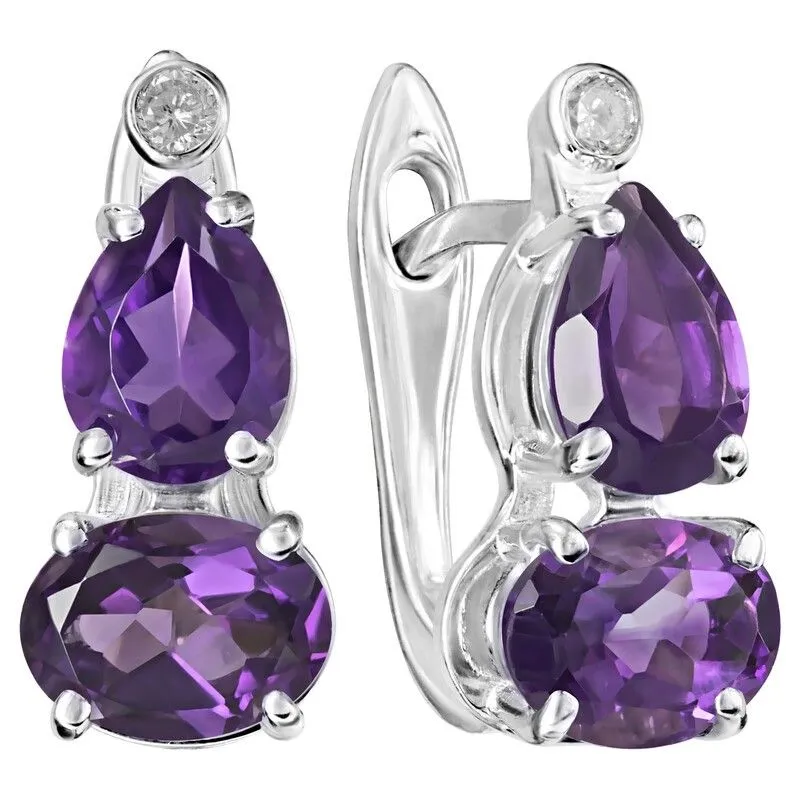 Серебряные серьги с натуральным аметистом (темный) - коллекция Сансара / Без покрытия.Средний вес украшения с камнями 3.26 гр.Месторождение(я): Аметист (Приполярный Урал, Россия).Ювелирные вставки:Аметист (Натуральный) овал 5*7 мм., средний вес: 0.72 карат.Аметист (Натуральный) груша 5*7 мм., средний вес: 0.65 карат.Белый Нанокристалл круг 2 мм., средний вес: 0.06 карат.Все изделия собственного производства и имеют гарантию 12 месяцев. Арт. 8691NP .