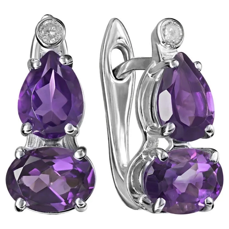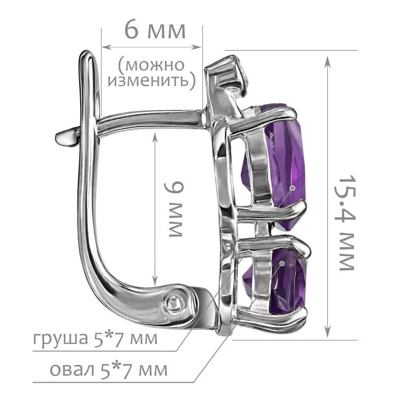 Серебряные серьги с натуральным аметистом (темный) - коллекция Сансара / покрытие Палладий.Средний вес украшения с камнями 3.25 гр.Месторождение(я): Аметист (Приполярный Урал, Россия).Ювелирные вставки:Аметист (Натуральный) овал 5*7 мм., средний вес: 0.72 карат.Аметист (Натуральный) груша 5*7 мм., средний вес: 0.65 карат.Белый Нанокристалл круг 2 мм., средний вес: 0.06 карат.Все изделия собственного производства и имеют гарантию 12 месяцев. Арт. 8691PD .