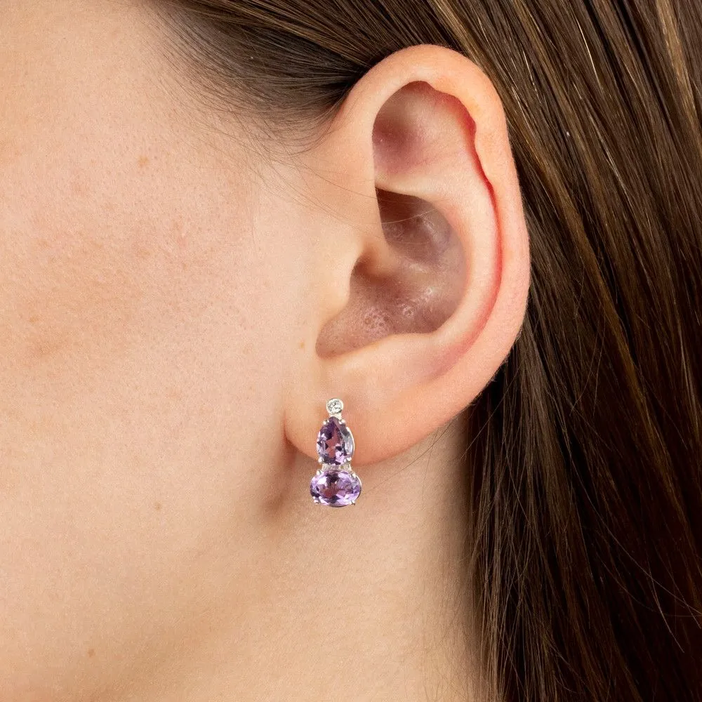 Серебряные серьги с натуральным аметистом (светлый) - коллекция Сансара / покрытие Палладий.Средний вес украшения с камнями 3.32 гр.Месторождение(я): Аметист (Приполярный Урал, Россия).Ювелирные вставки:Аметист (Натуральный) овал 5*7 мм., средний вес: 0.72 карат.Аметист (Натуральный) груша 5*7 мм., средний вес: 0.65 карат.Белый Нанокристалл круг 2 мм., средний вес: 0.06 карат.Все изделия собственного производства и имеют гарантию 12 месяцев. Арт. 8692PD .