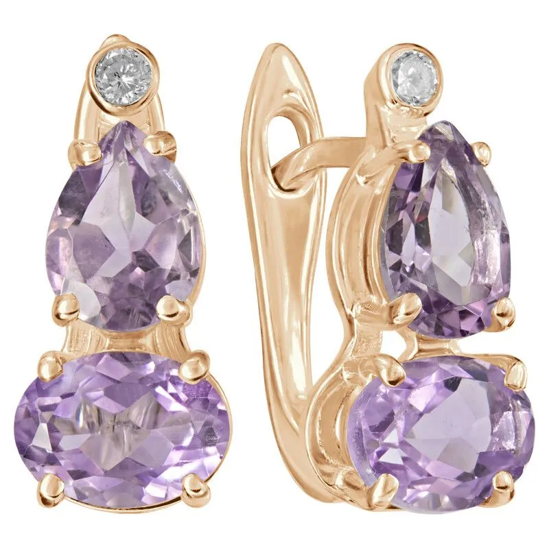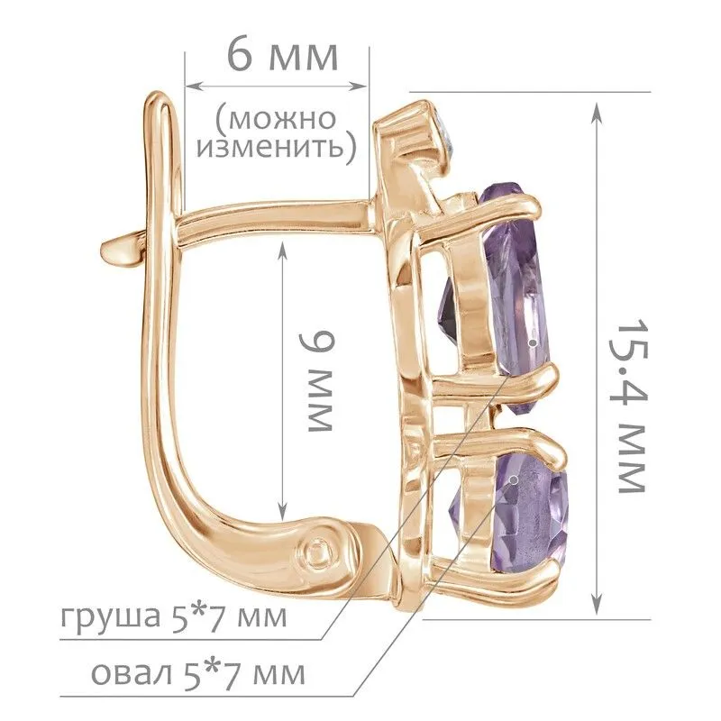 Серебряные серьги с натуральным аметистом (светлый) - коллекция Сансара / покрытие Розовое Золото.Средний вес украшения с камнями 3.26 гр.Месторождение(я): Аметист (Приполярный Урал, Россия).Ювелирные вставки:Аметист (Натуральный) овал 5*7 мм., средний вес: 0.72 карат.Аметист (Натуральный) груша 5*7 мм., средний вес: 0.65 карат.Белый Нанокристалл круг 2 мм., средний вес: 0.06 карат.Все изделия собственного производства и имеют гарантию 12 месяцев. Арт. 8692PG .