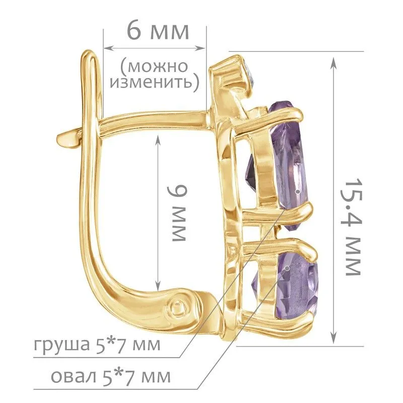 Серебряные серьги с натуральным аметистом (светлый) - коллекция Сансара / покрытие Желтое Золото.Средний вес украшения с камнями 3.32 гр.Месторождение(я): Аметист (Приполярный Урал, Россия).Ювелирные вставки:Аметист (Натуральный) овал 5*7 мм., средний вес: 0.72 карат.Аметист (Натуральный) груша 5*7 мм., средний вес: 0.65 карат.Белый Нанокристалл круг 2 мм., средний вес: 0.06 карат.Все изделия собственного производства и имеют гарантию 12 месяцев. Арт. 8692YG .