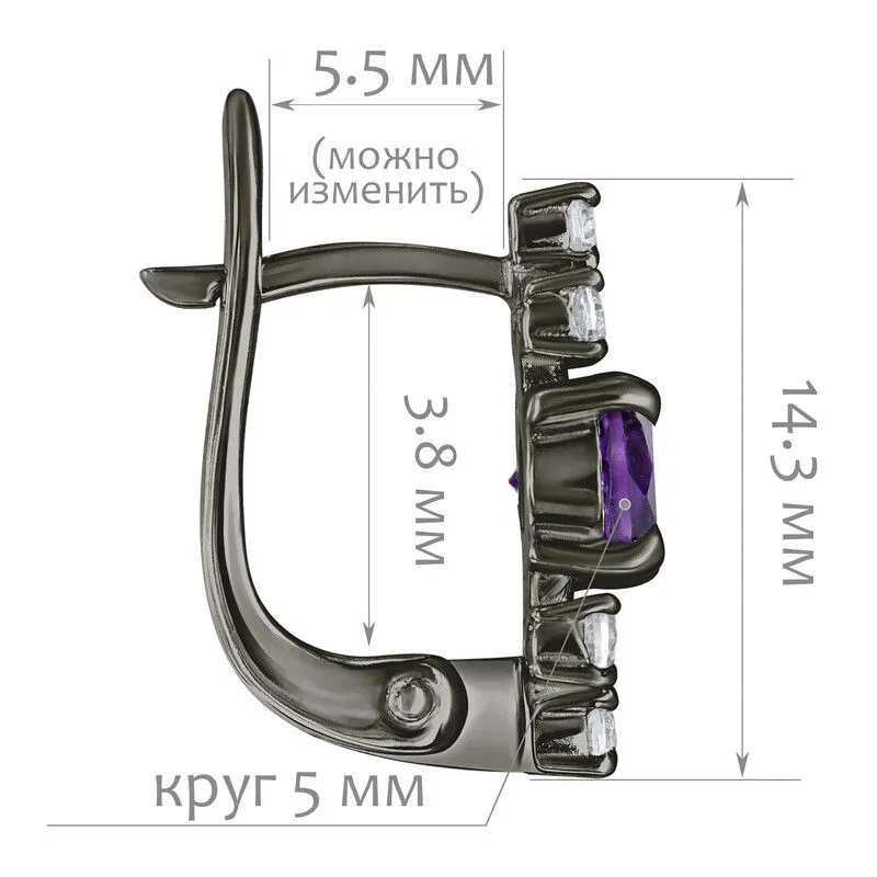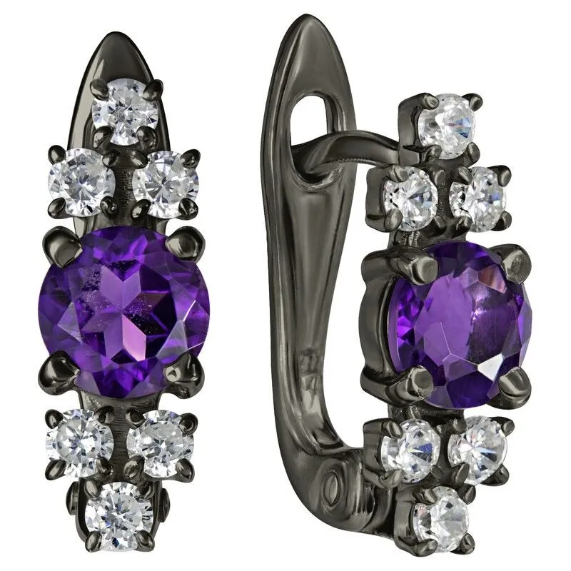 Серебряные серьги с натуральным аметистом (темный) - коллекция Нова / покрытие Черный Родий.Средний вес украшения с камнями 2.51 гр.Месторождение(я): Аметист (Приполярный Урал, Россия).Ювелирные вставки:Аметист (Натуральный) круг 5 мм., средний вес: 0.48 карат.Белый Нанокристалл круг 2 мм., средний вес: 0.06 карат.Все изделия собственного производства и имеют гарантию 12 месяцев. Арт. 8705BR