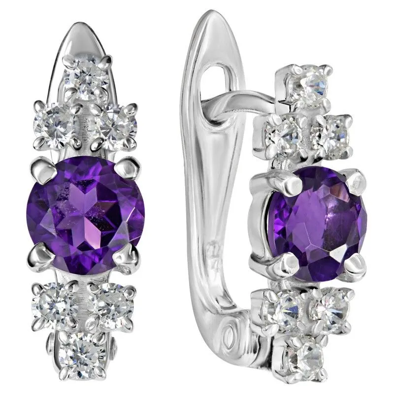 Серебряные серьги с натуральным аметистом (темный) - коллекция Нова / Без покрытия.Средний вес украшения с камнями 2.63 гр.Месторождение(я): Аметист (Приполярный Урал, Россия).Ювелирные вставки:Аметист (Натуральный) круг 5 мм., средний вес: 0.48 карат.Белый Нанокристалл круг 2 мм., средний вес: 0.06 карат.Все изделия собственного производства и имеют гарантию 12 месяцев. Арт. 8705NP .